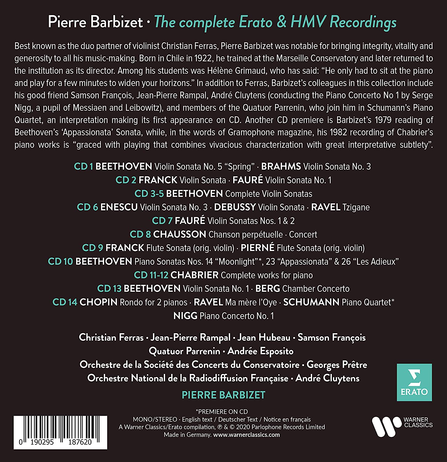 Pour être honnête, il y a peu de nouveautés dans le coffret Barbizet, puisque tous ses disques avec Christian Ferras ont été à de multiples reprises édités et réédités (je reste surpris qu’en 1958 – alors que tous les grands labels étaient passés à la stéréo depuis 1954-1955 – les sonates de Beethoven aient été enregistrées seulement en mono)