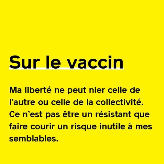 Or, dans ce cas précis, ne pas me faire vacciner condamne potentiellement toute la nation au confinement à moyen terme. Donc voir mes droits d’accès limités parce que je décide de faire peser un risque sur l’ensemble, ce n’est pas attaquer mes droits, c’est normal. Basique.