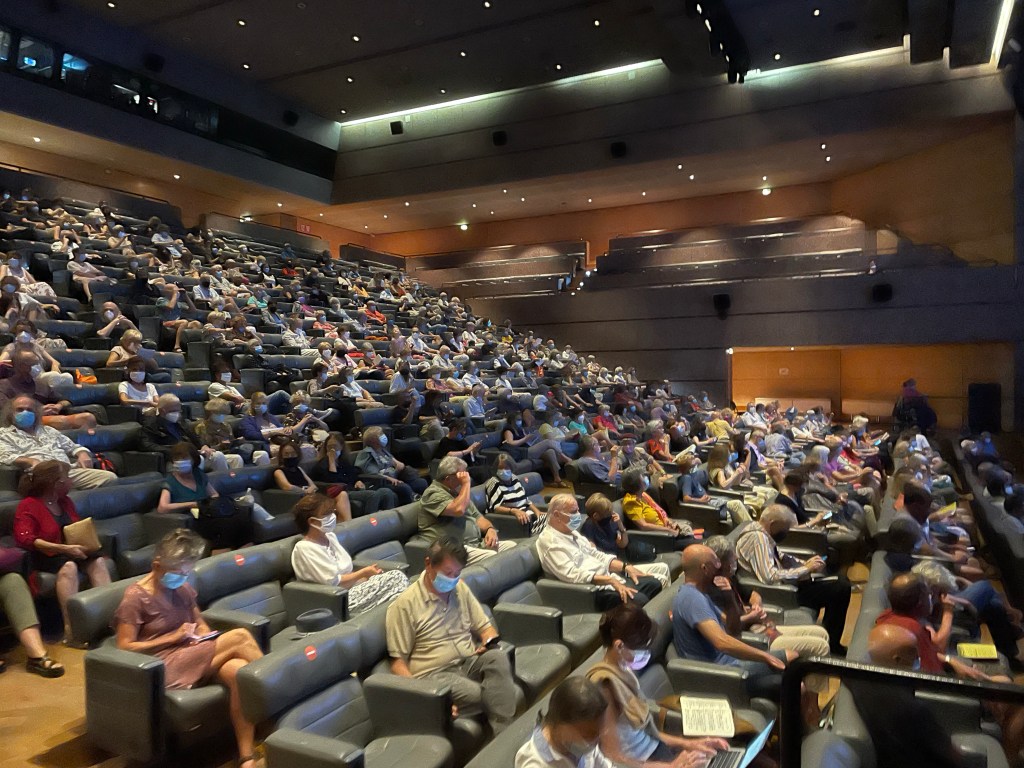 Après la masterclass de Michel DalbertoLe 20 juillet Bertrand Chamayou jouait Les Djinns et les Variations symphoniques de César Franck avec l’Orchestre national de France dirigé par Cristian Macelaru Le maire de Montpellier Michael Delafosse et la coprésidente du festival et PDG de Radio France Sibyle Veil assistent au concert de l’ONFDébut de la masterclass de Françoise Pollet