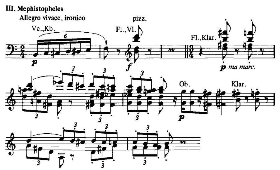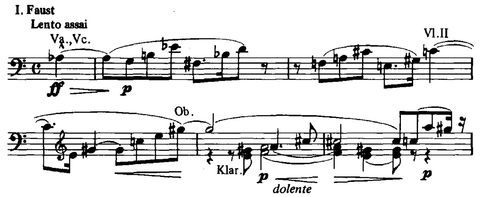 La version originale n’utilise que des vents, des cors et des cordes. Liszt révise sa partition en 1860 en adjoignant à la fin un Chorus Mysticus, dans lequel des extraits du Second Faust sont chantés par un chœur d’hommes et un ténor solo.
