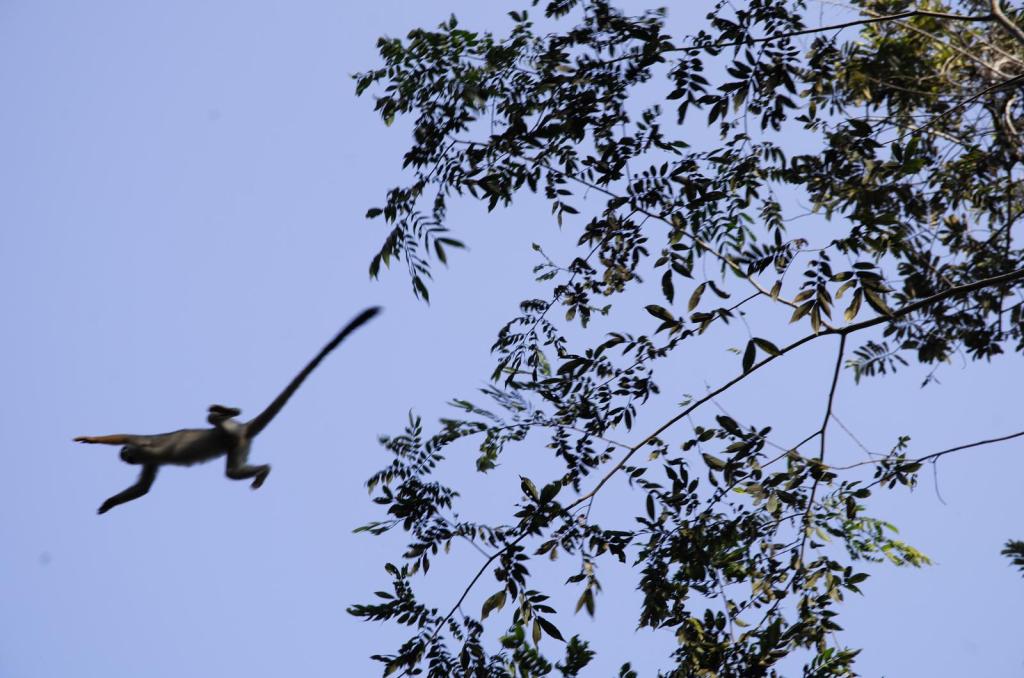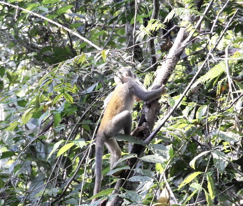 Première balade en pirogue l’après-midi pour aller théoriquement pêcher le piranha… on en reviendra bredouille mais on aura pénétré plus au coeur de la jungle amazonienne, rencontré des dizaines de singes farceurs, les capucins, les « écureuils » qui prennent un malin plaisir à se défier – c’est à qui fera le saut le plus périlleux d’un arbre à l’autre, les hurleurs à poil rouge…