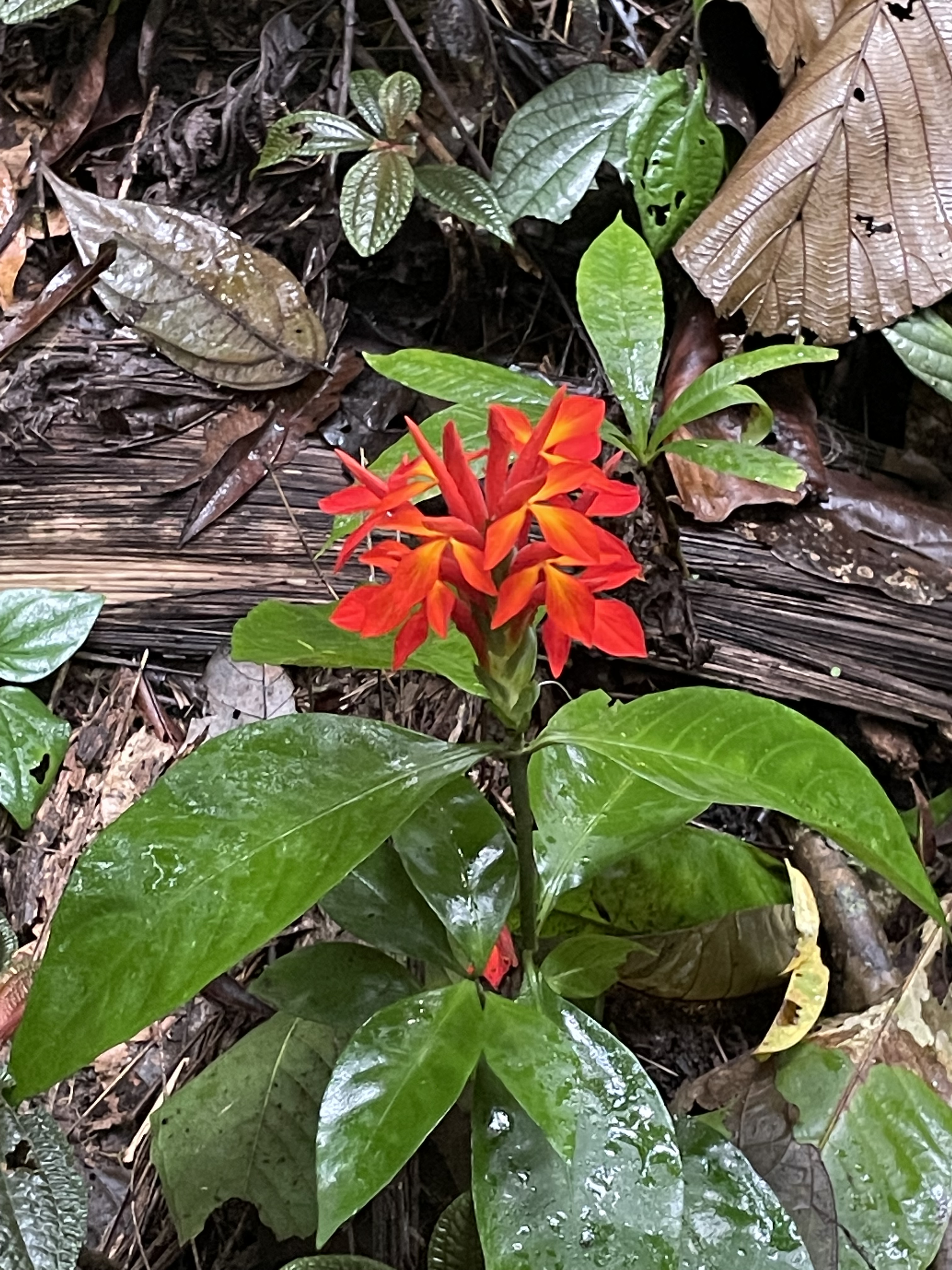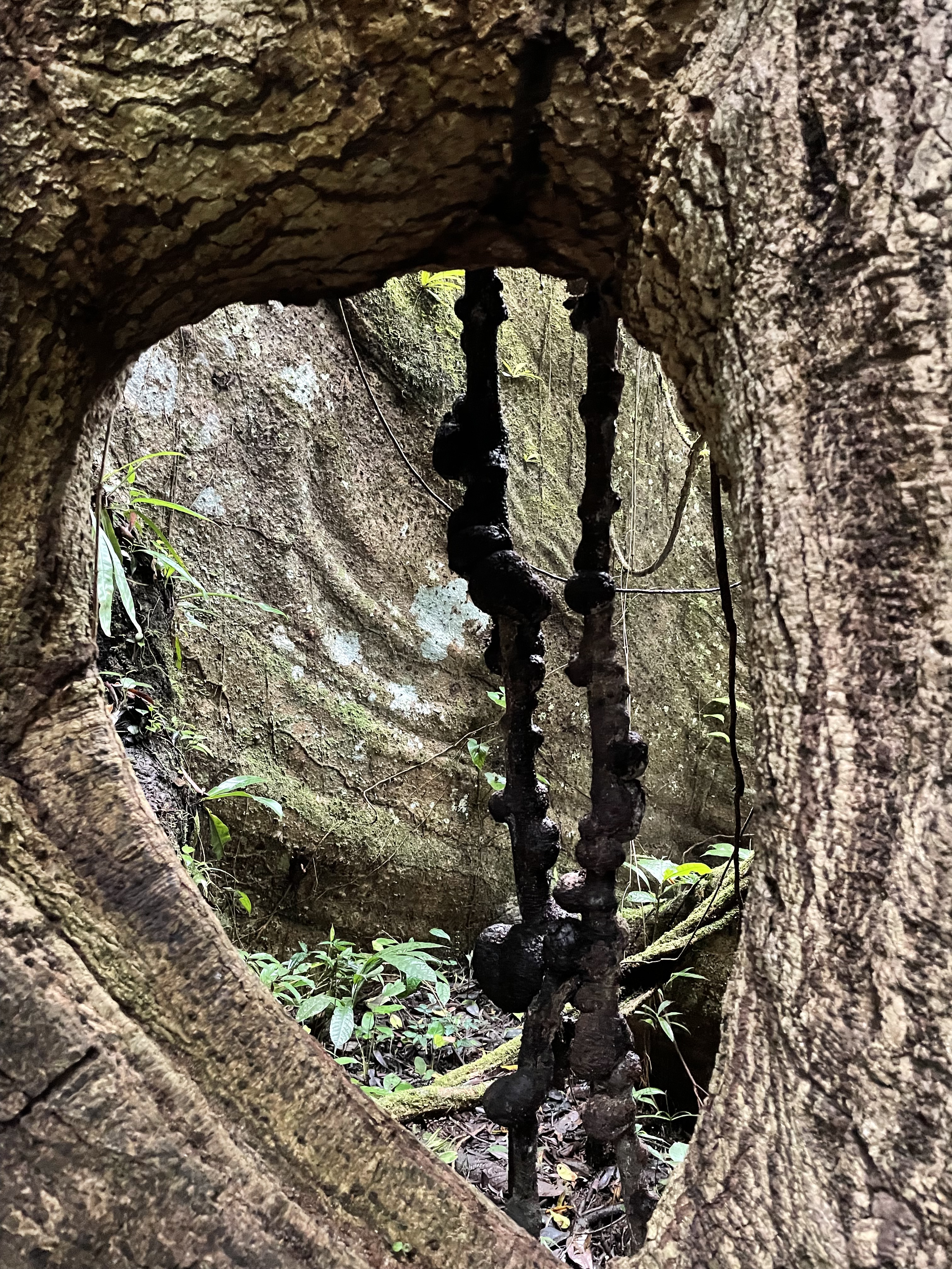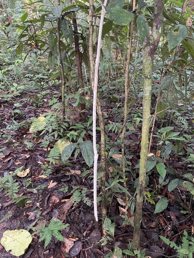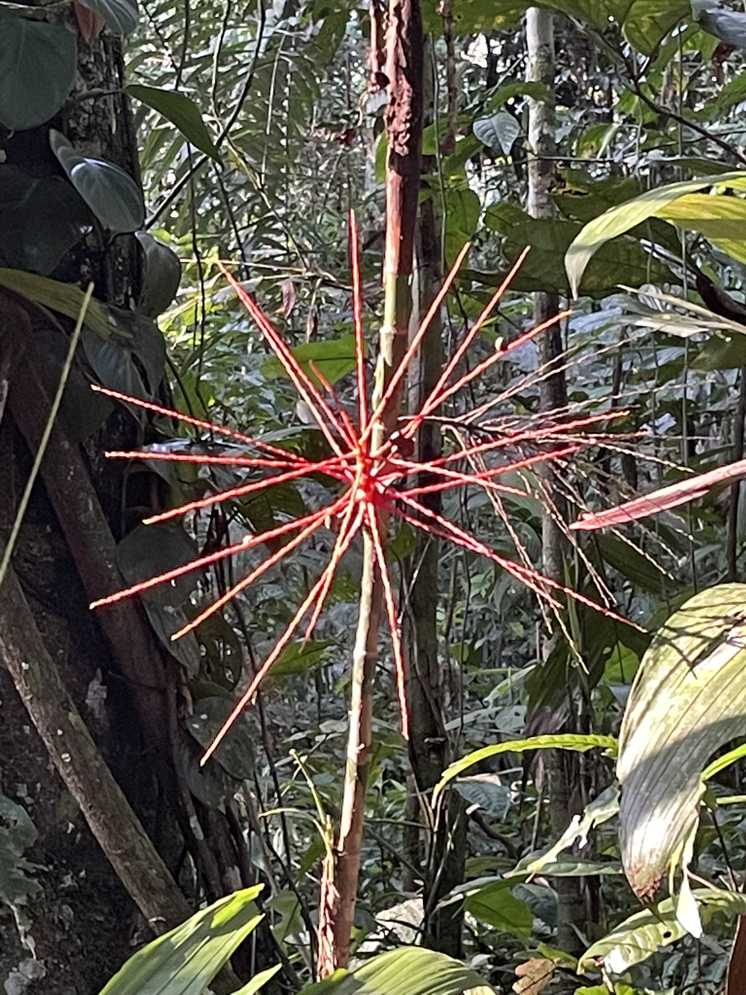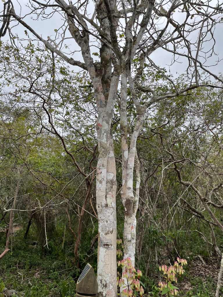Je sais désormais à peu près tout sur les vertus des espèces de palmiers qui poussent à l’état naturel ici – et pourquoi il faut absolument en proscrire la culture intensive comme le fait le Brésil de Bolsonaro, obliger tous les industriels de l’agro-alimentaire à renoncer à l’huile de palme ! – Comme ci-dessus cette espèce endémique, ce mince tronc blanc, phosphorescent, qui fait office de lampe de poche la nuit pour les promeneurs égarés !