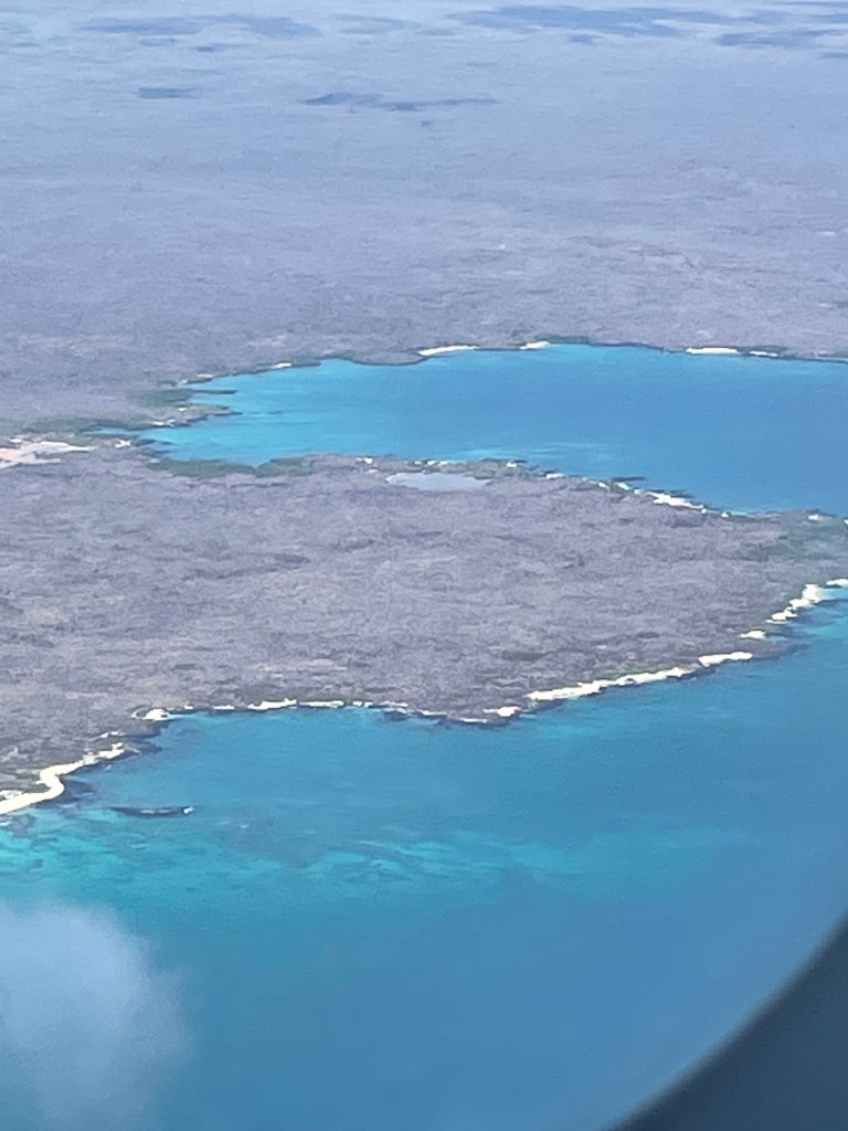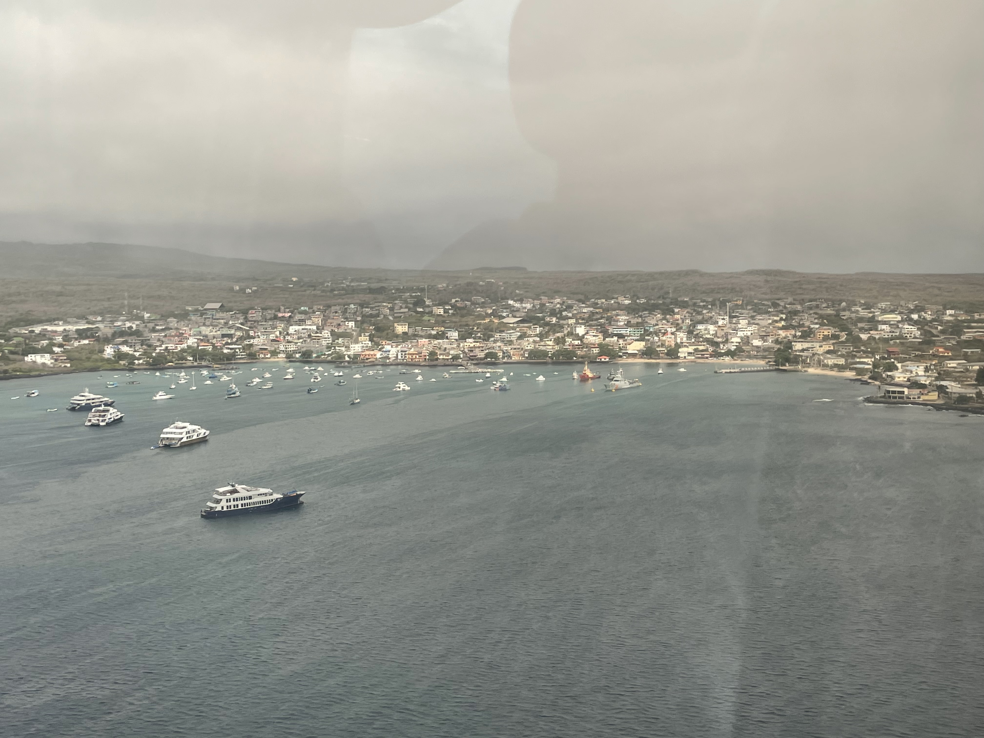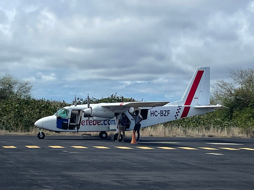 Vol sur une ligne régulière des LATAM Airlines, un Airbus 319. Comme tous les avions partant de Quito, il fait d’abord étape à Guayaquil où il se recharge en carburant, puis moins de deux heures d’un vol sans encombre jusqu’à Baltra, une ancienne base militaire qui sert désormais d’aéroport pour l’île de Santa Cruz.