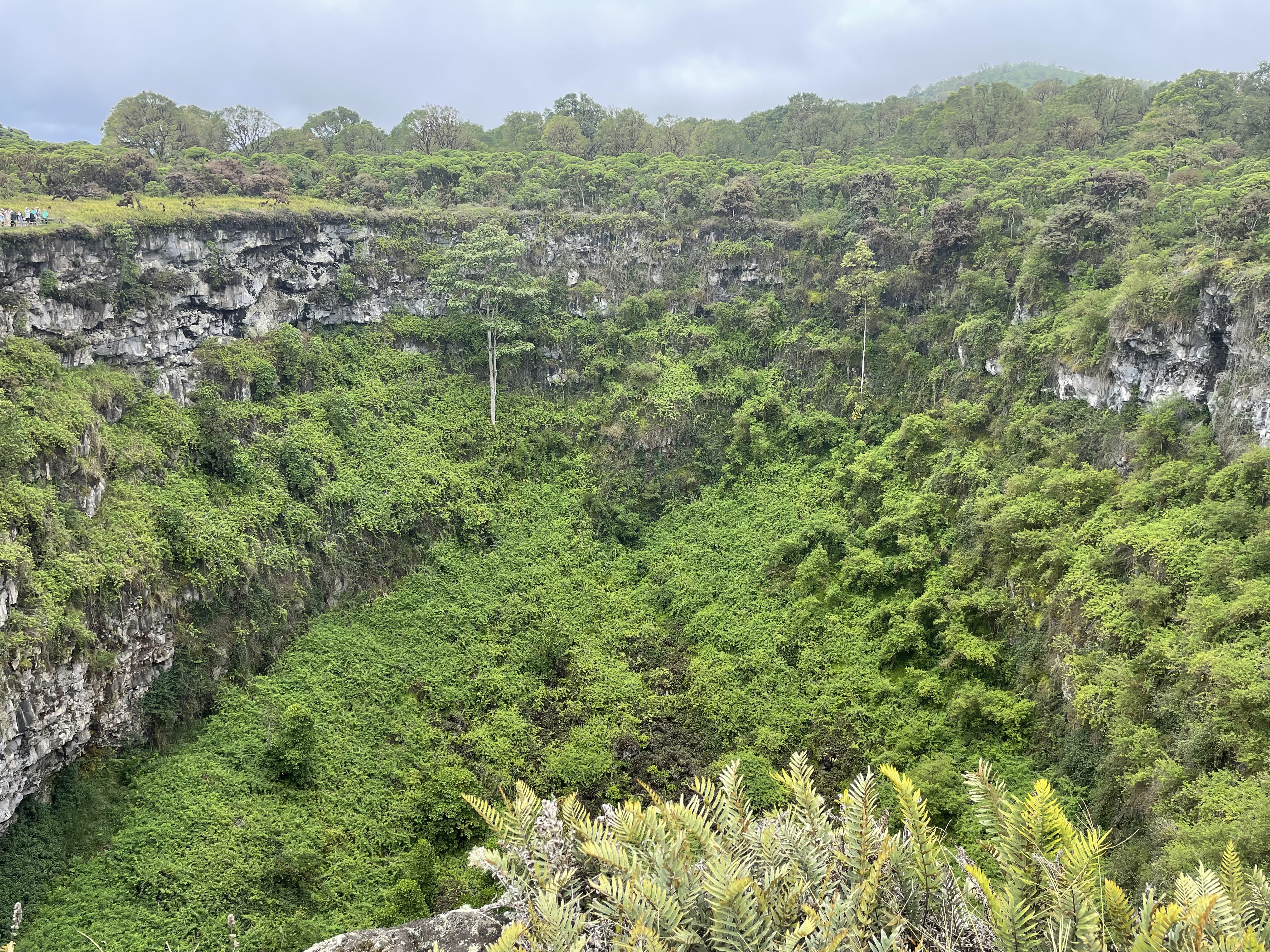 Au nord de l’île, un paysage quasi-désertique, qui va brusquement changer à mi-chemin de l’unique route toute droite qui va du nord au sud. Un arrêt sur un site très étrange, les Gemellos, deux « trous », deux effondrements volcaniques de près de 100 m chacun au milieu d’une végétation devenue luxuriante.