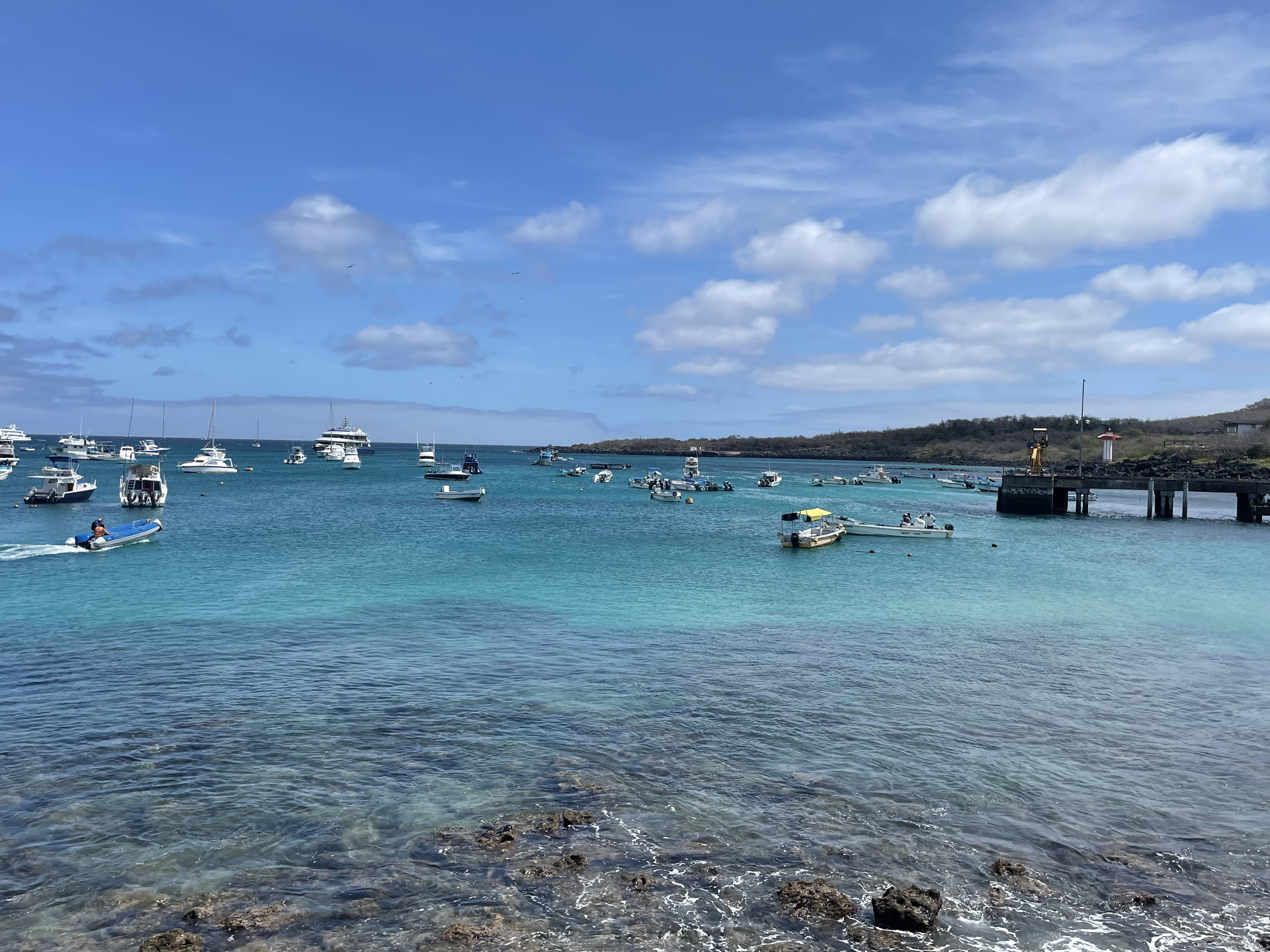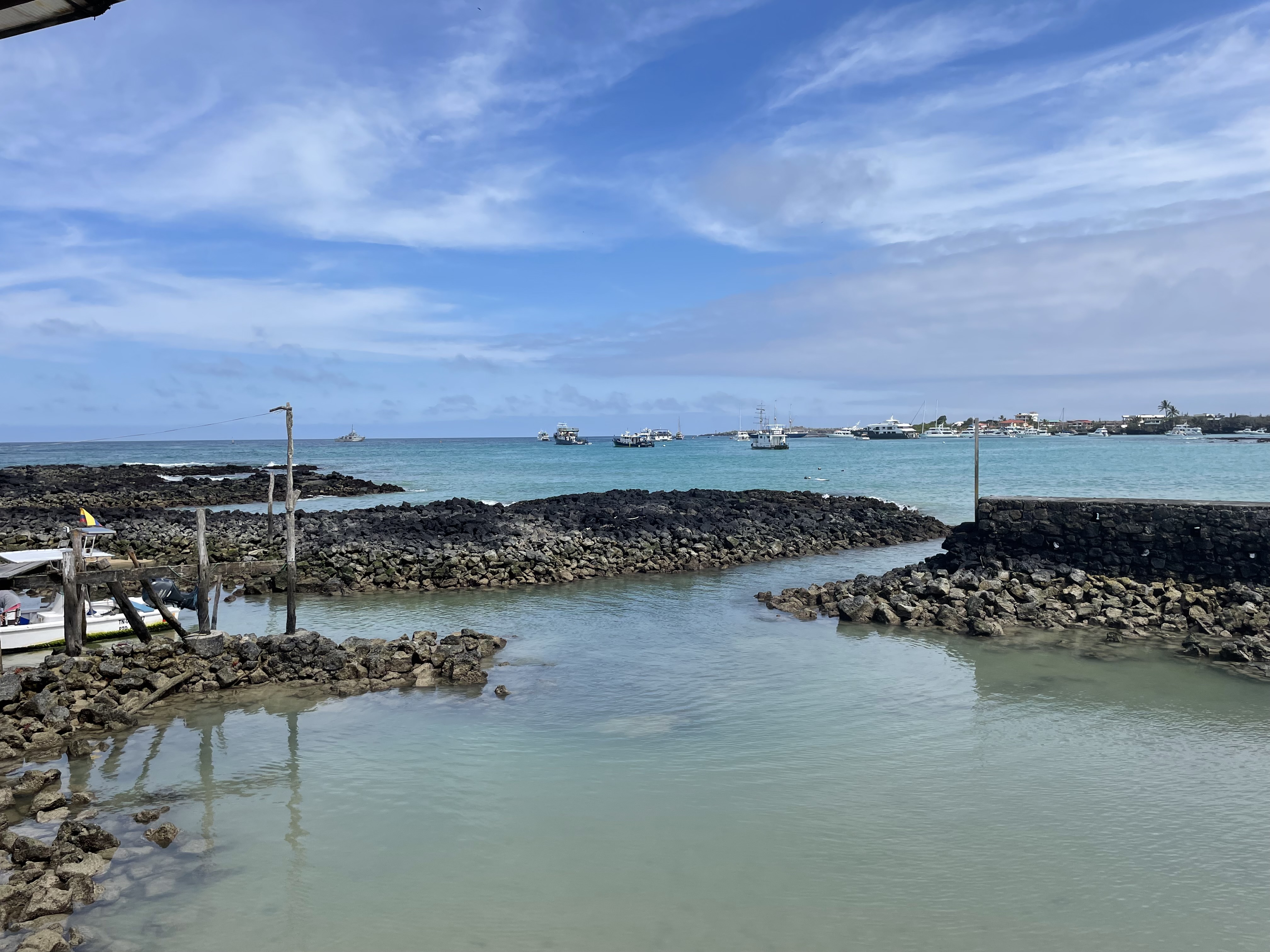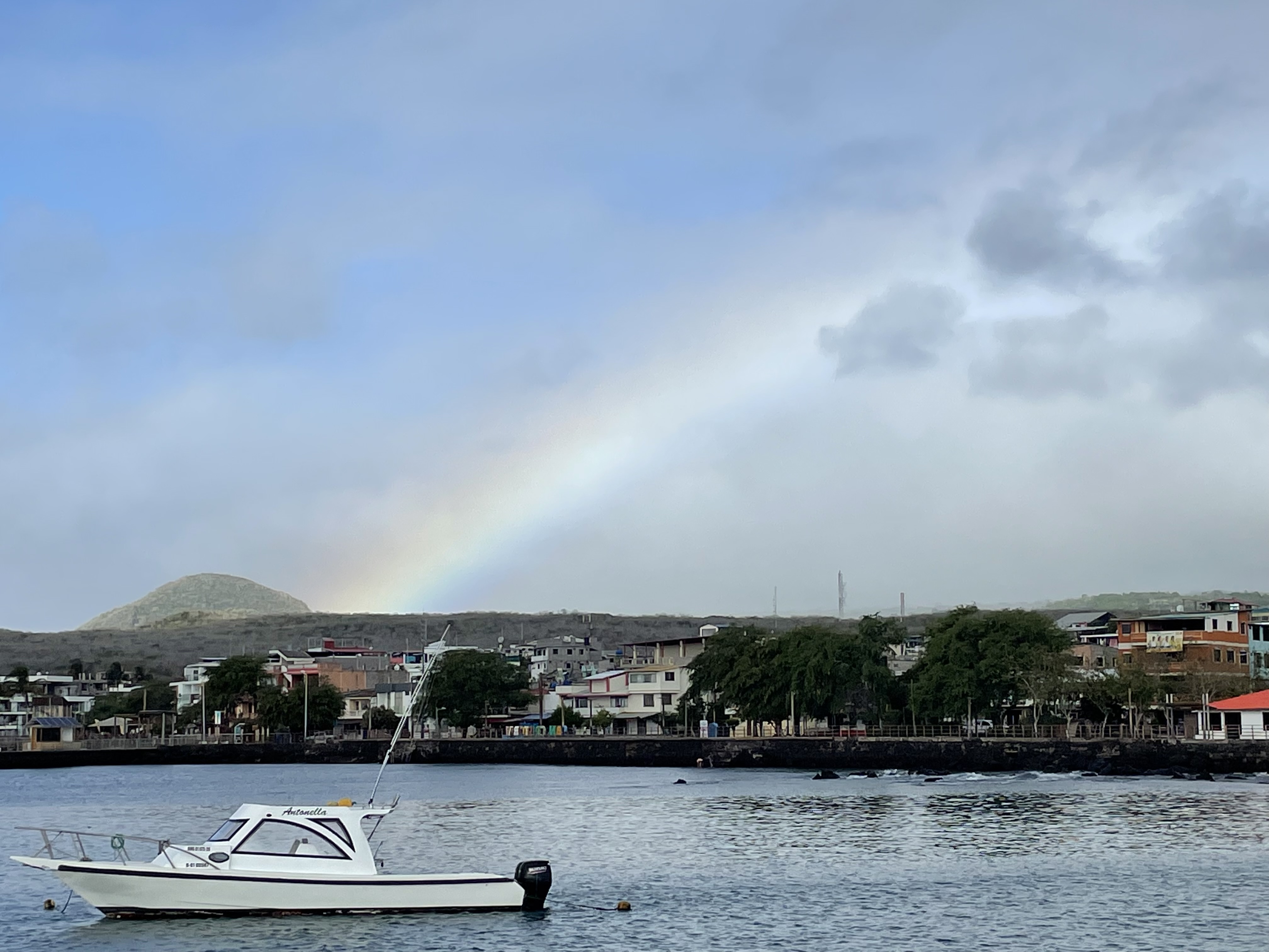 Accueillis à la sortie par Fernando, un guide charmant, parlant un anglais parfait, très documenté, la navette de l’aéroport nous conduit jusqu’à un ferry. Après dix minutes de traversée, nous accostons sur l’île de Santa Cruz.