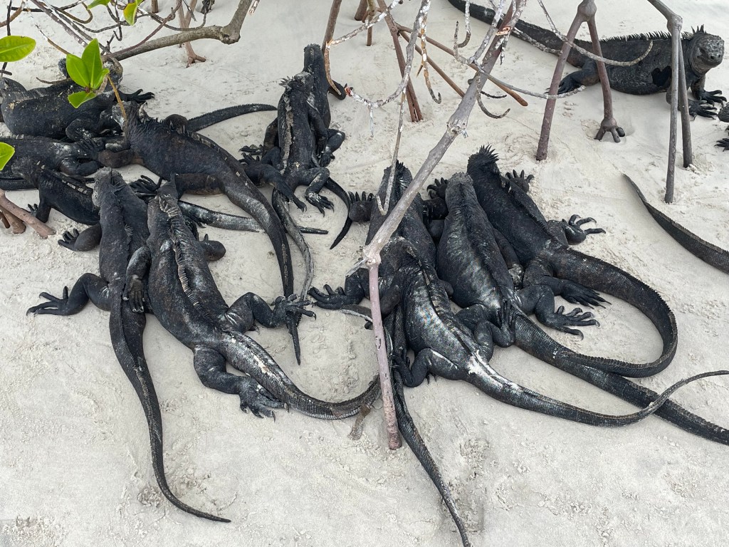 L’île où les iguanes marins, de la couleur de la roche basaltique, sont rois.