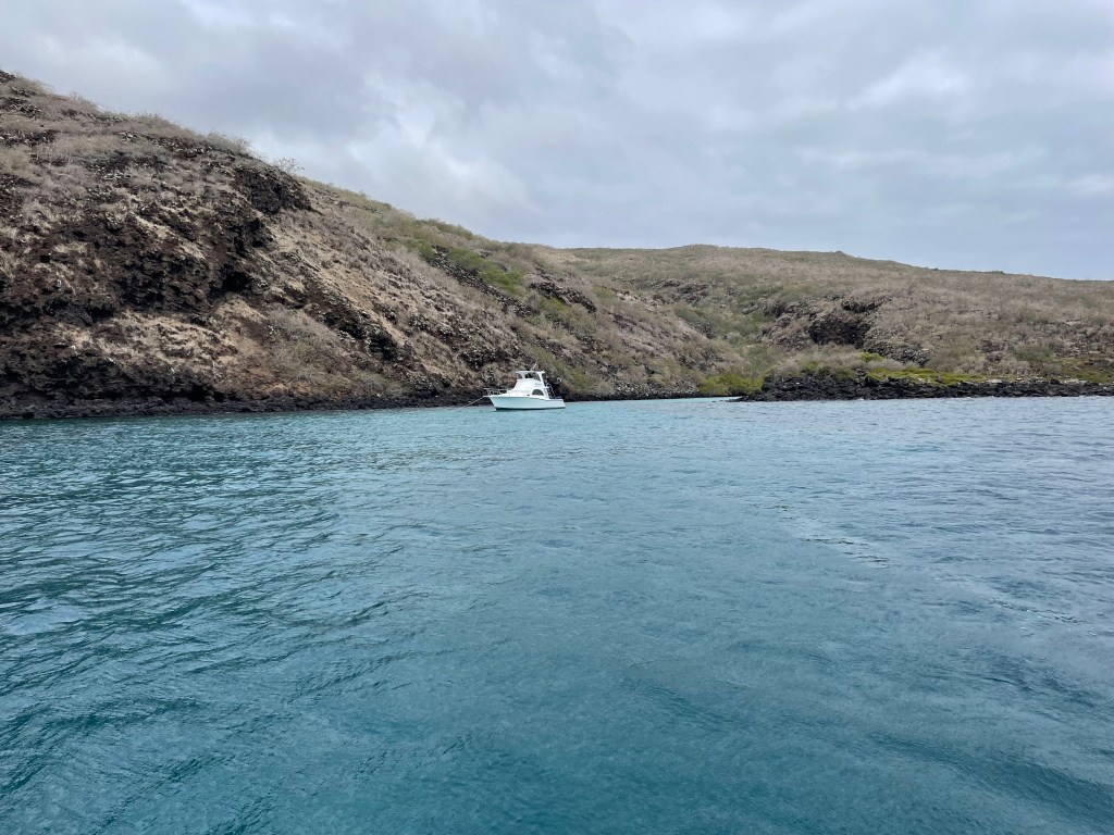 Cette fois c’est du sérieux, on embarque sur un petit yacht à moteur très bruyant, surtout pendant 1h 30, pour rejoindre l’île Pinzon, inhabitée, mais autour de laquelle se rassemblent maintes espèces de poissons multicolores, des roses, des couleur sable à queue jaune, des requins, des tortues marines.