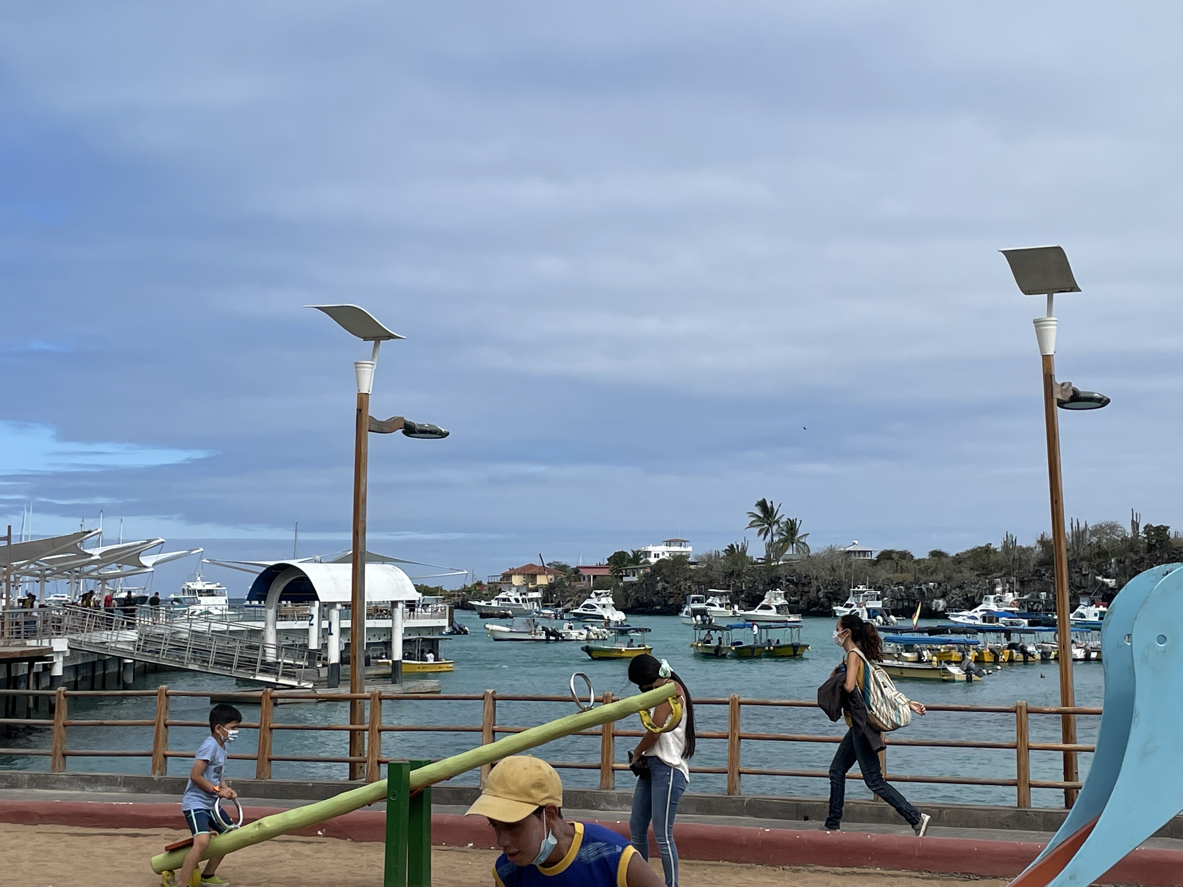 Le soir sur le port de Puerto Aroya, dernière soirée sur l’île de Santa Cruz