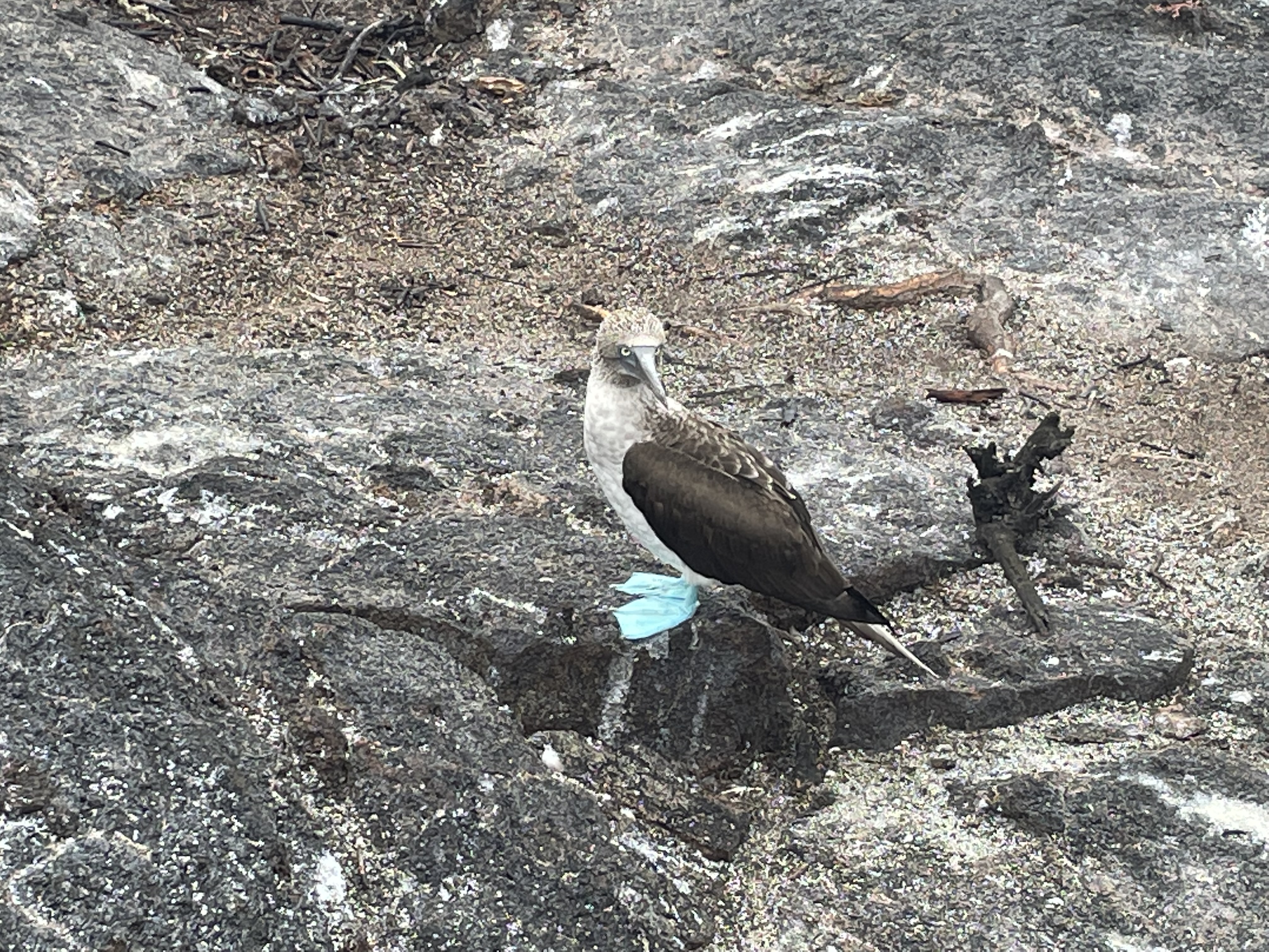 Re-tour en bateau – toujours aussi peu confortable, mais on est nettement moins nombreux – pour aller voir Los Tuneles, ces sortes de tunnels et d’arches formés par la lave au contact de la mer. Beaucoup d’oiseaux, notamment des fous à pattes bleues. Vraiment bleues.