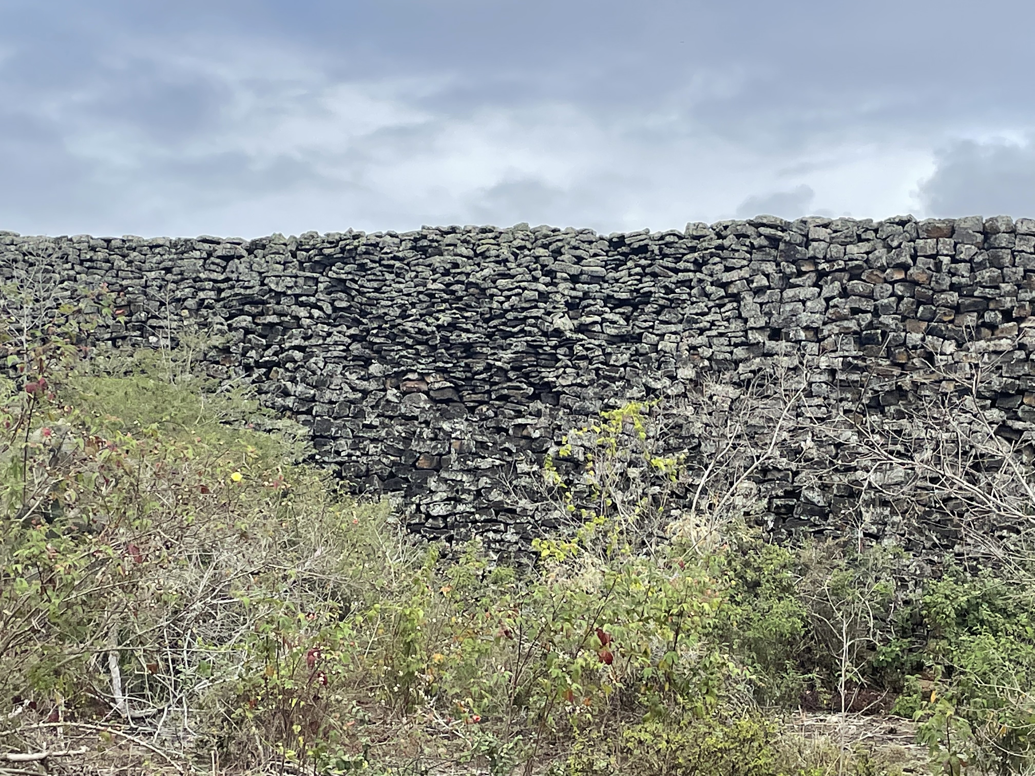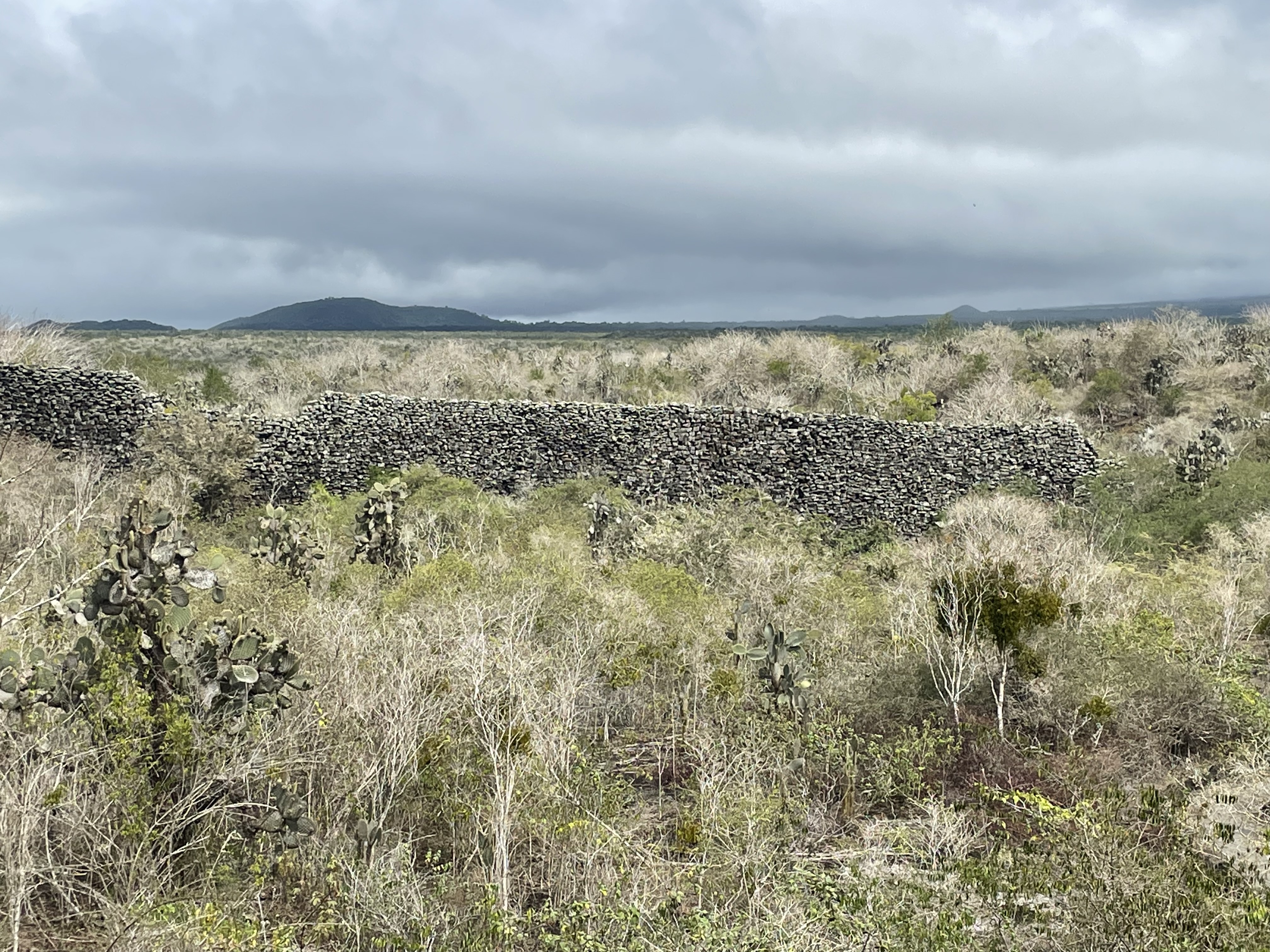 A 150 mètres au-dessus de ce mur se dresse un promontoire d’où l’on a vue sur toute l’île, où les Américains avaient installé un puissant radar pendant la Seconde Guerre mondiale. Ces installations ont été demantelées au début des années 60 et ont, en partie, servi à l’édification de l’église Saint-François de Puerto Villamil. Mais des vestiges du radar demeurent sur le piton. Avis aux amateurs !