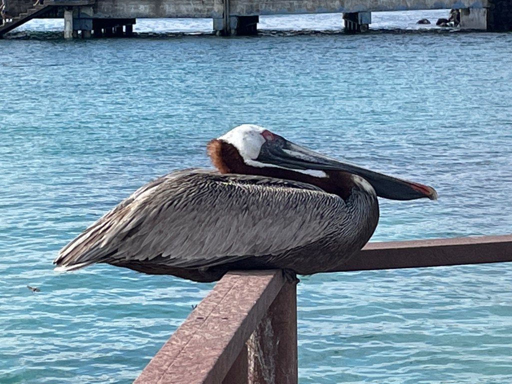 Le port de San Cristobal est très familier au pélican roux, une espèce endémique des Galapagos.