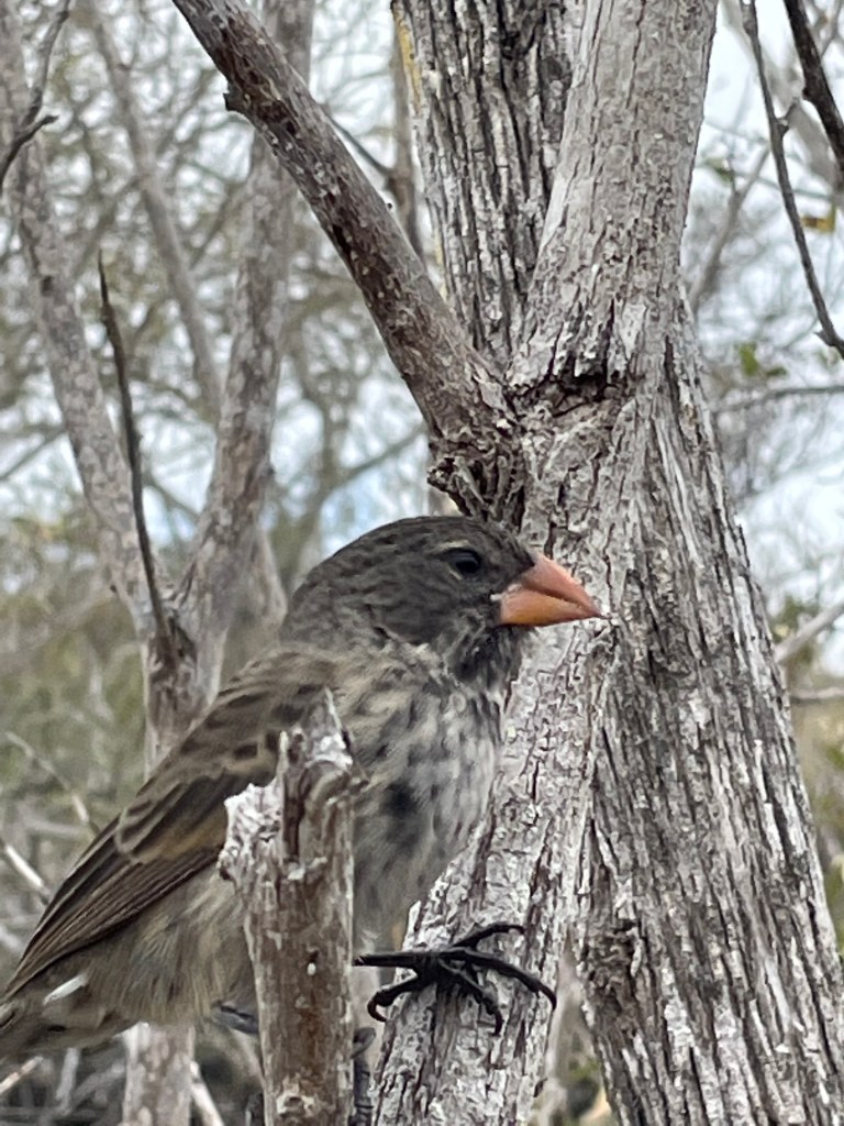 Le « pinson de Darwin », comme on l’appelle ici, ne craint pas l’homme. J’ai même le souvenir d’un audacieux qui m’était grimpé sur le ventre – j’étais allongé sur la plage – dans le vain espoir d’y trouver quelque nourriture ?