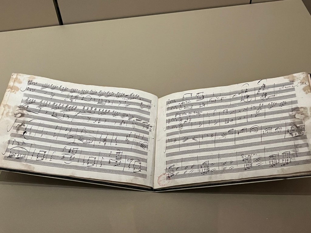 Au milieu le manuscrit du Sacre du Printemps d’Igor Strawinsky, à droite la Symphonie Fantastique de Berlioz !