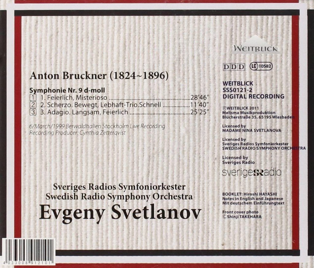 Mais même si l’on connaissait une Huitième de Bruckner captée en URSS, on a eu la surprise de découvrir une 9ème symphonie avec la radio suédoise, qui n’est pas vraiment dans la tradition germanique. Musique de l’éternité, des espaces infinis… et dans une prise de son magnifique.