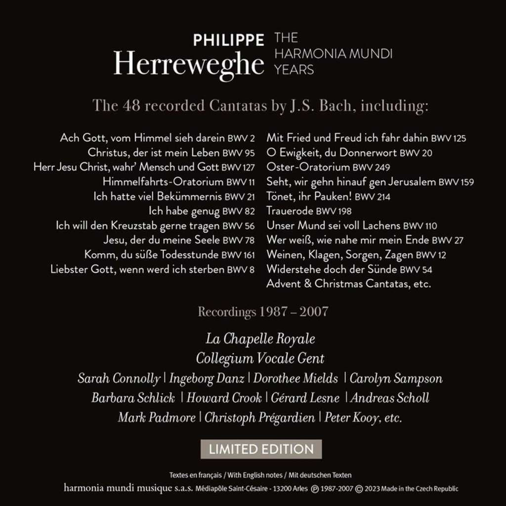 Ici l’occasion m’est donnée par un fabuleux coffret – un cadeau idéal ! – récapitulatif des enregistrements réalisés pour Harmonia Mundi par Philippe Herreweghe de 1987 à 2007 de 48 cantates de Bach.