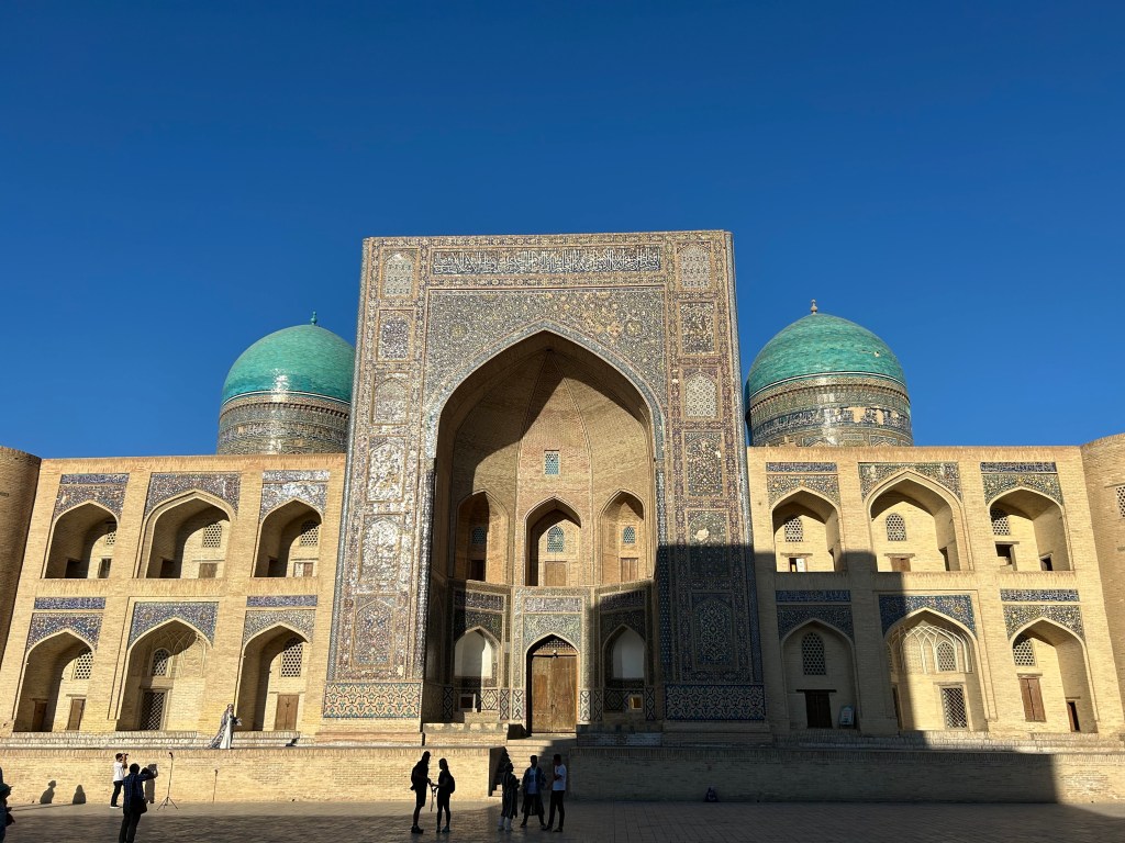 Les proportions sont impressionnantes, les anciennes madrassas se dressant face à face auprès de minarets qui servaient de repères aux caravaniers de la route de la soie. Les marchands sont nombreux, mais les produits de l’artisanat local sont de loin plus présents que les babioles importées, les artisans sont heureux de montrer leur savoir-faire et n’agressent jamais le touriste. Au contraire, toutes celles et tous ceux que nous croisons devant leurs étals, dans les cafés, les restaurants, sont d’une amabilité, d’une gentillesse même, auxquelles on n’est plus accoutumé.