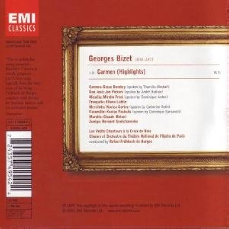 On s’étonnera peut-être que je ne place qu’ici, en tout cas pas dans les priorités, la version toujours présentée comme une référence de Claudio Abbado avec Teresa Berganza et Placido Domingo. Je n’ai jamais partagé l’engouement général pour cette version, que je trouve certes bien réalisée, mais trop statique, pas assez vivante. Et des soucis de prononciation rédhibitoires.