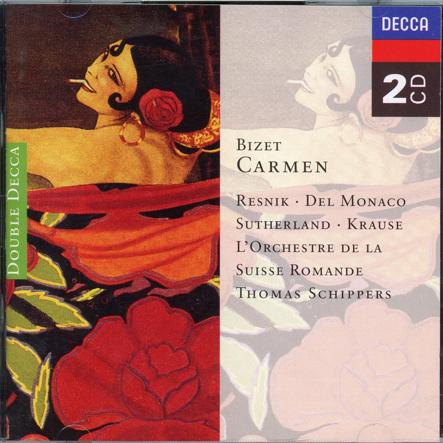 Très exotique aussi, mais pour d’autres raisons, la version de Thomas Schippers, grand chef de théâtre s’il en fut, avec une Carmen impossible en la personne de Regina Resnik, caricature de cantatrice et de Carmen en même temps. Rien ne va dans cet album, à part la direction racée de Schoippers et la rigueur de l’Escamillo de Tom Krause.