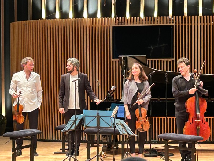 Vendredi soir, Justin Taylor et l’ensemble SarbacanesSamedi soir, de gauche à droite, Pierre Fouchenneret, Théo Fouchenneret, Lise Berthaud, François Salque