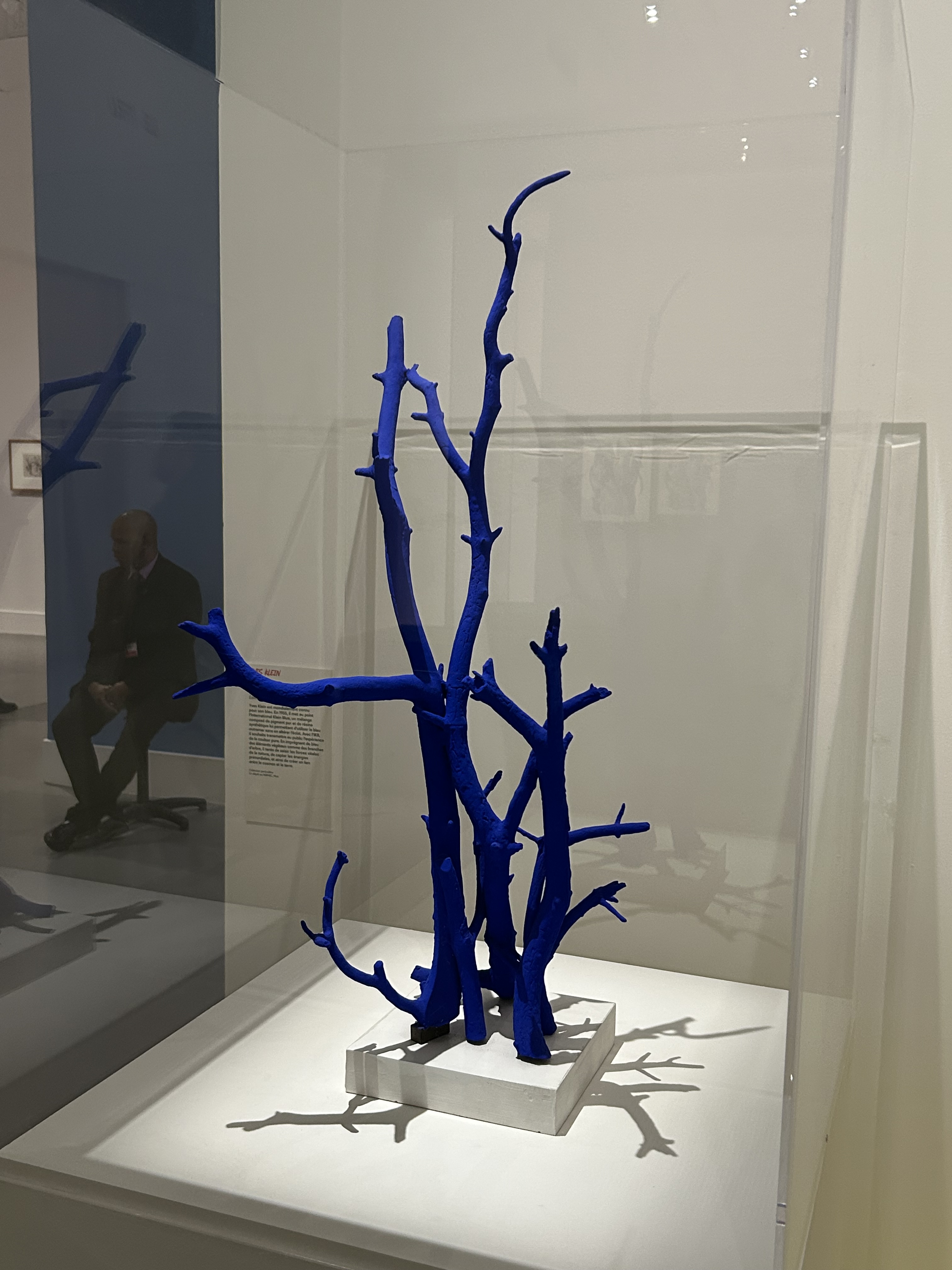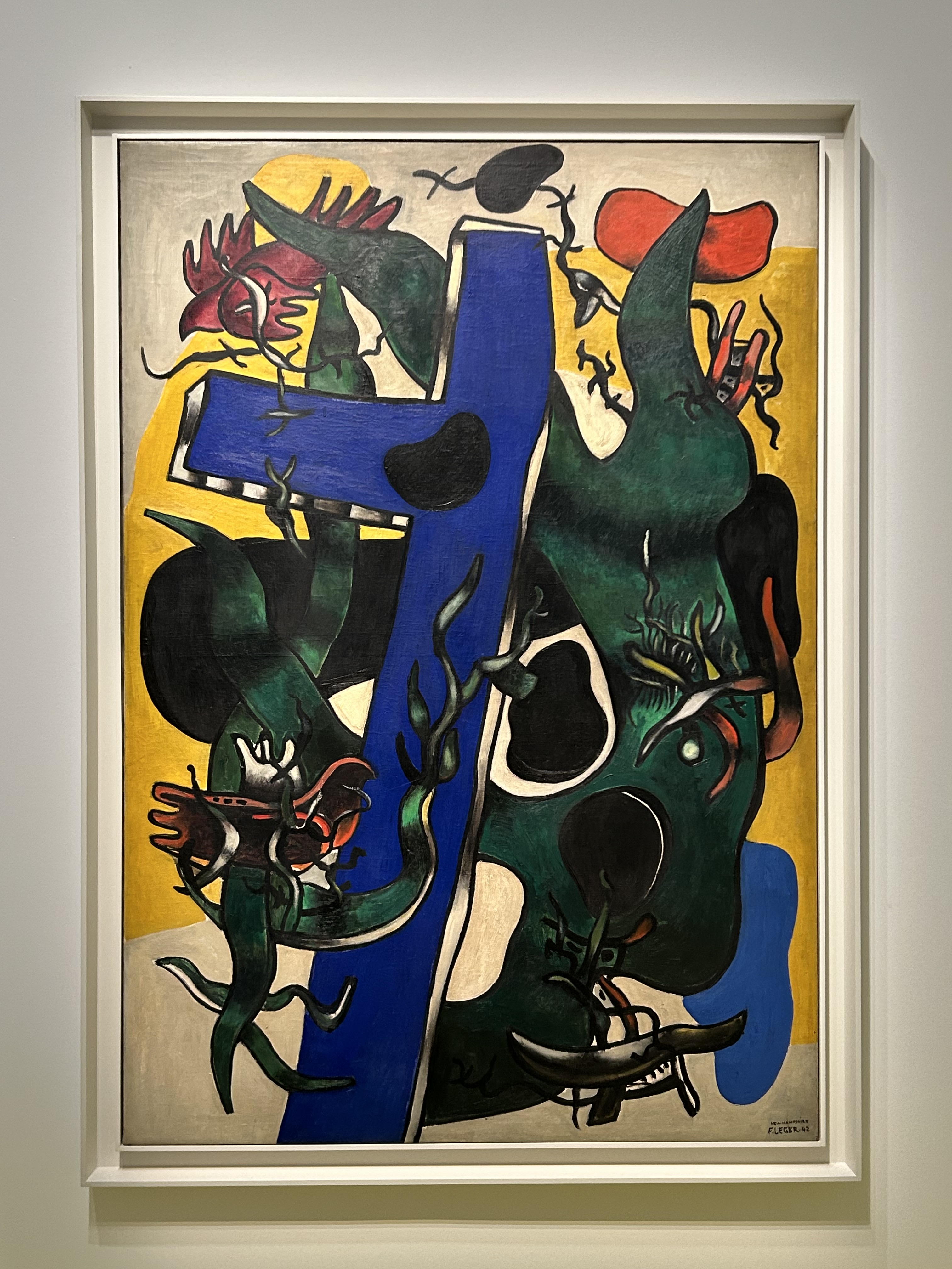Je ne suis pas fou de ce genre d’expo-concept, mais je dois reconnaître que j’ignorais les fils qui reliaient Fernand Léger à certains de ses contemporains ou de ses successeurs (si tant est que le concept de successeur ait une quelconque validité s’agissant d’artistes peintres). Par exemple entre ce tableau de Fernand Léger et cette sculpture d’Yves Klein : le bleu sans doute !
