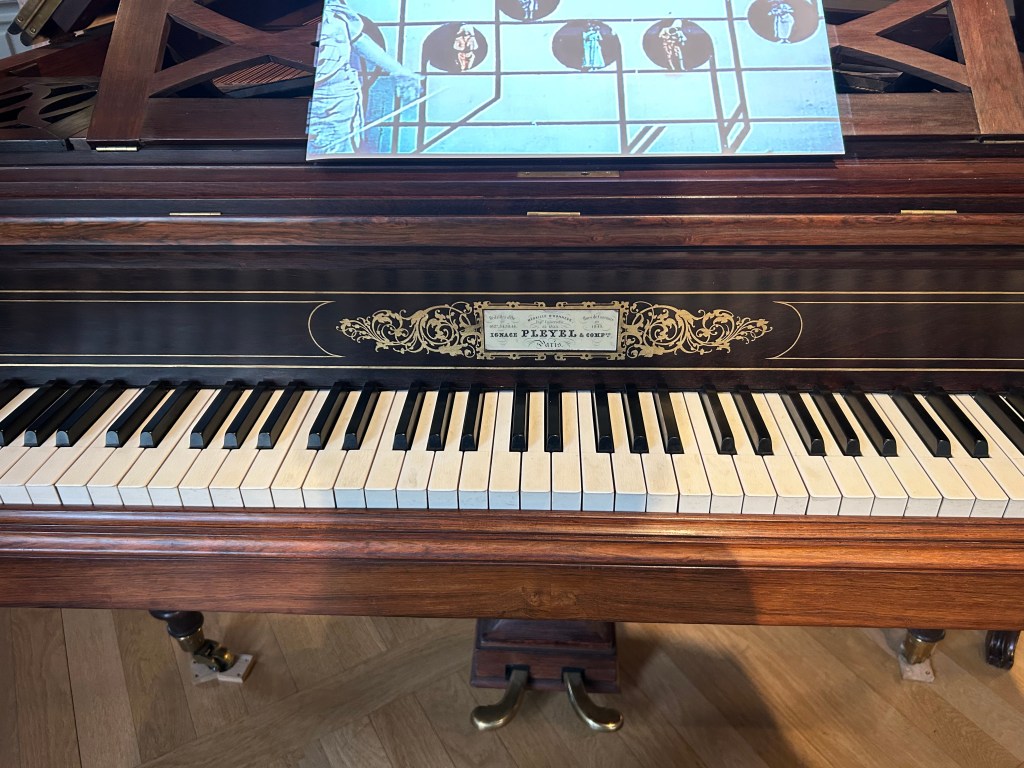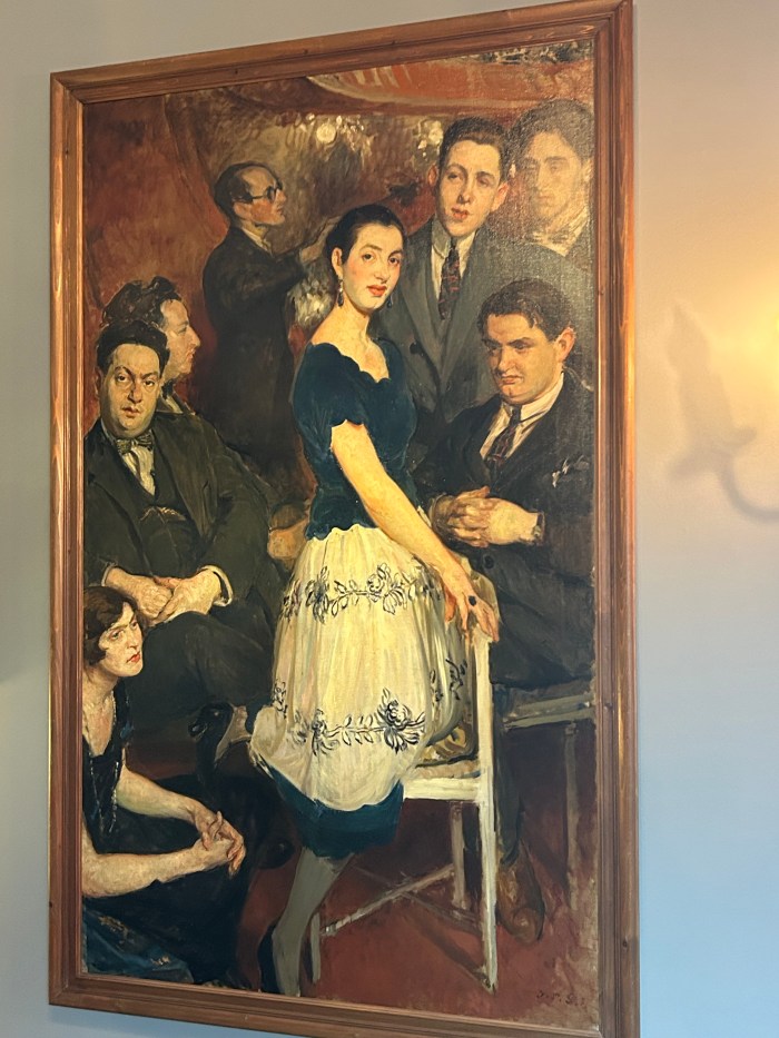 On n’est pas surpris que la musique y ait une place de choix, surtout en découvrant ce fameux portrait par Jacques-Emile Blanche du Groupe des Six : tout en bas à gauche Germaine Tailleferre, au-dessus à gauche, de face Darius Milhaud, de profil Arthur Honegger, au fond avec des lunettes le pianiste Jean Wiener, au centre la pianiste Marcelle Meyer, à sa droite debout Francis Poulenc et Jean Cocteau, assis Georges Auric. Manque Louis Durey.