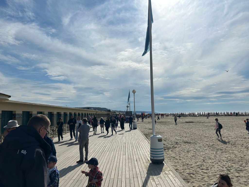 Depuis 1997, j’ai dû revenir trois ou quatre fois à Deauville pour le festival. Je n’ai jamais beaucoup aimé cette partie de la côte normande, la foule qui l’envahit. Je préfère de loin les alentours, l’intérieur des terres ou des lieux plus authentiques comme Houlgate. Mais une balade sur les célèbres planches est incontournable surtout lorsque les prévisions de la météo sont aussi contredites que ce samedi de Pâques