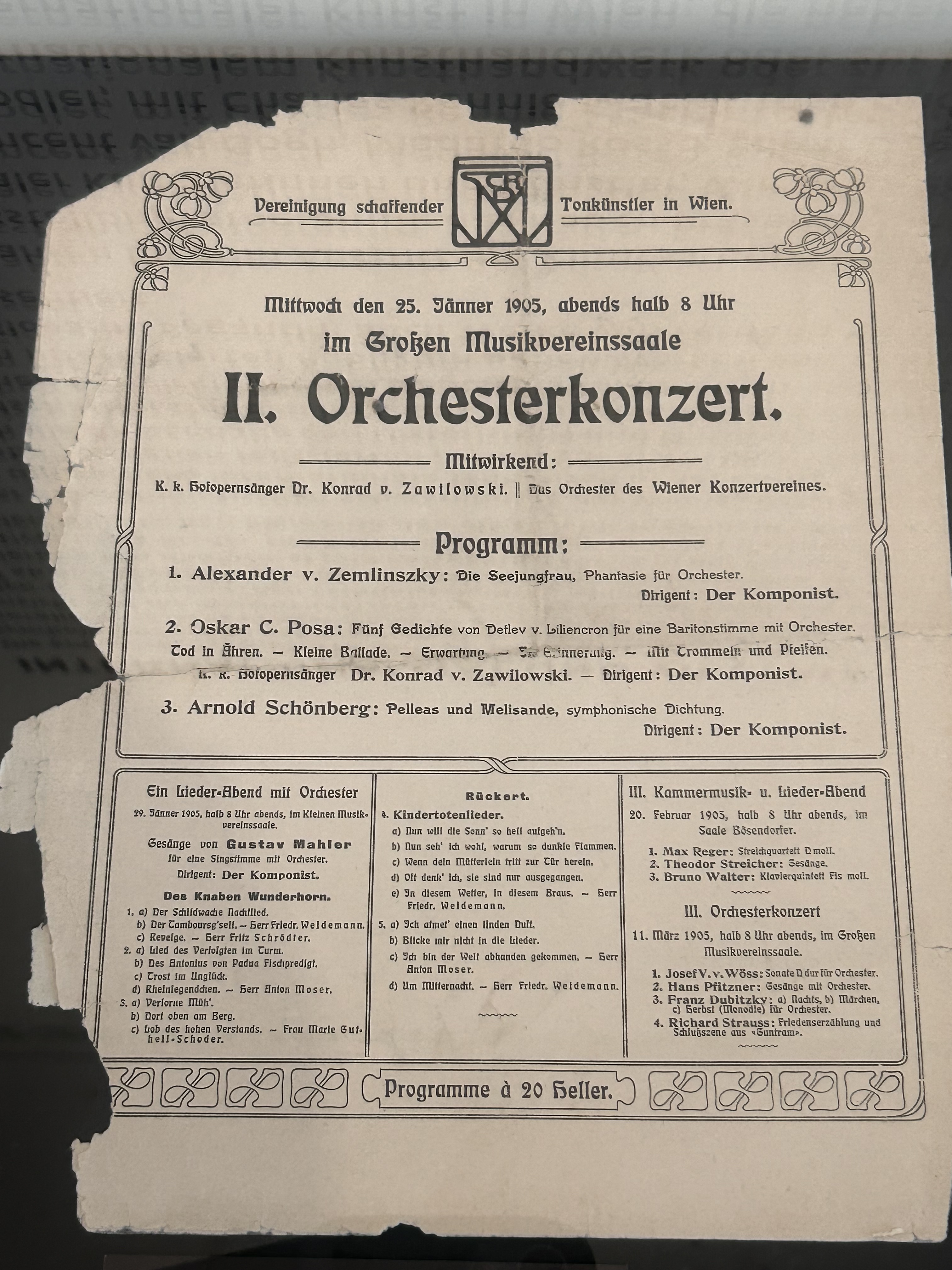 En visitant le Musée Leopold – on y consacrera tout un article – on tombe sur des documents exceptionnels, comme ce programme de concert de 1905.