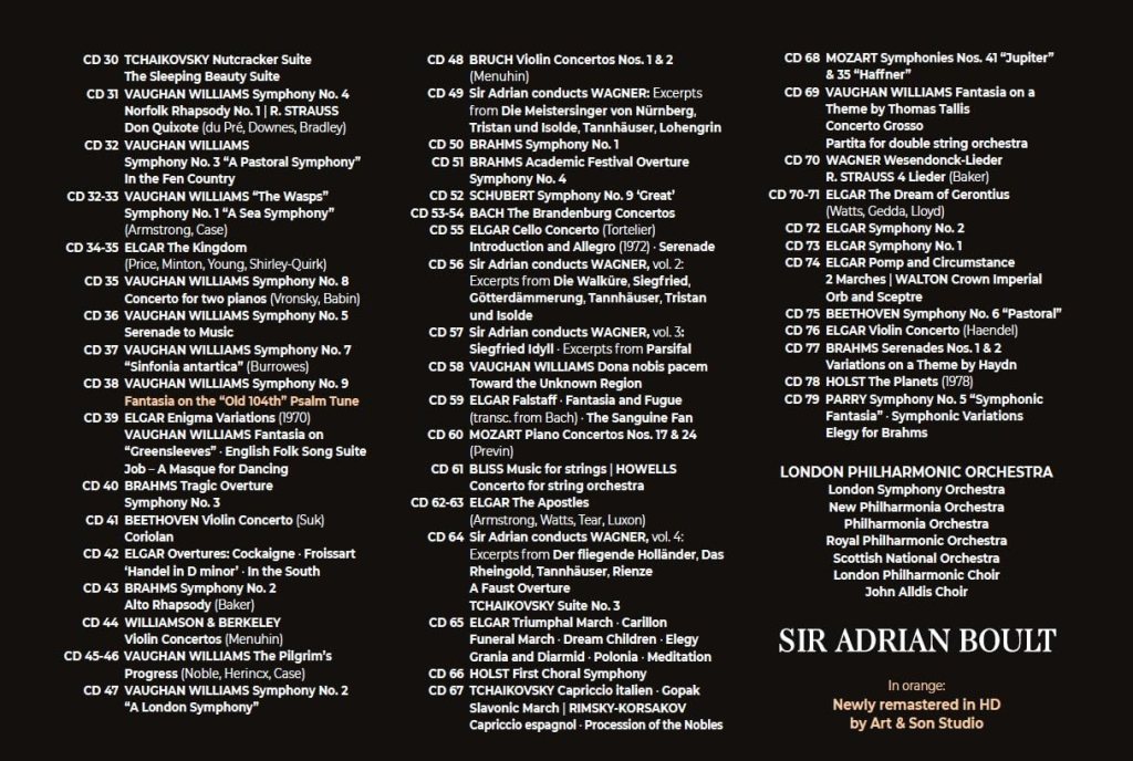 J’invite à relire ces articles (notamment Plans B) lorsqu’on veut échapper aux clichés qui s’attachent aux musiciens britanniques qui devraient se cantonner à la musique britannique. Adrian Boult dans Elgar, Holst, Vaughan-Williams c’est presque normal, et c’est une large part du nouveau coffret, mais il y a beaucoup plus dans son héritage discographique. C’est sur les originalités de cette grosse boîte que je m’arrête ici. Il y a beaucoup de surprises, et de bonnes surprises.