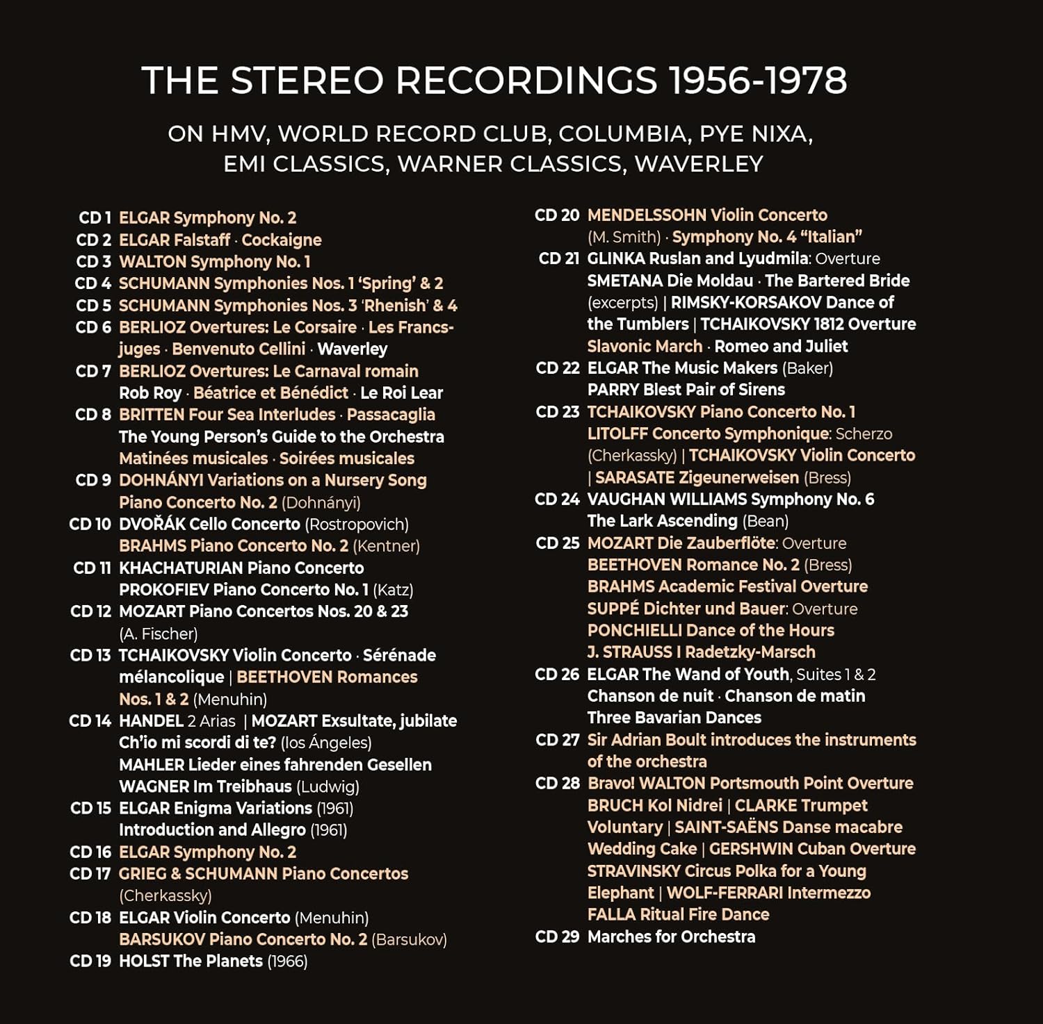 J’invite à relire ces articles (notamment Plans B) lorsqu’on veut échapper aux clichés qui s’attachent aux musiciens britanniques qui devraient se cantonner à la musique britannique. Adrian Boult dans Elgar, Holst, Vaughan-Williams c’est presque normal, et c’est une large part du nouveau coffret, mais il y a beaucoup plus dans son héritage discographique. C’est sur les originalités de cette grosse boîte que je m’arrête ici. Il y a beaucoup de surprises, et de bonnes surprises.