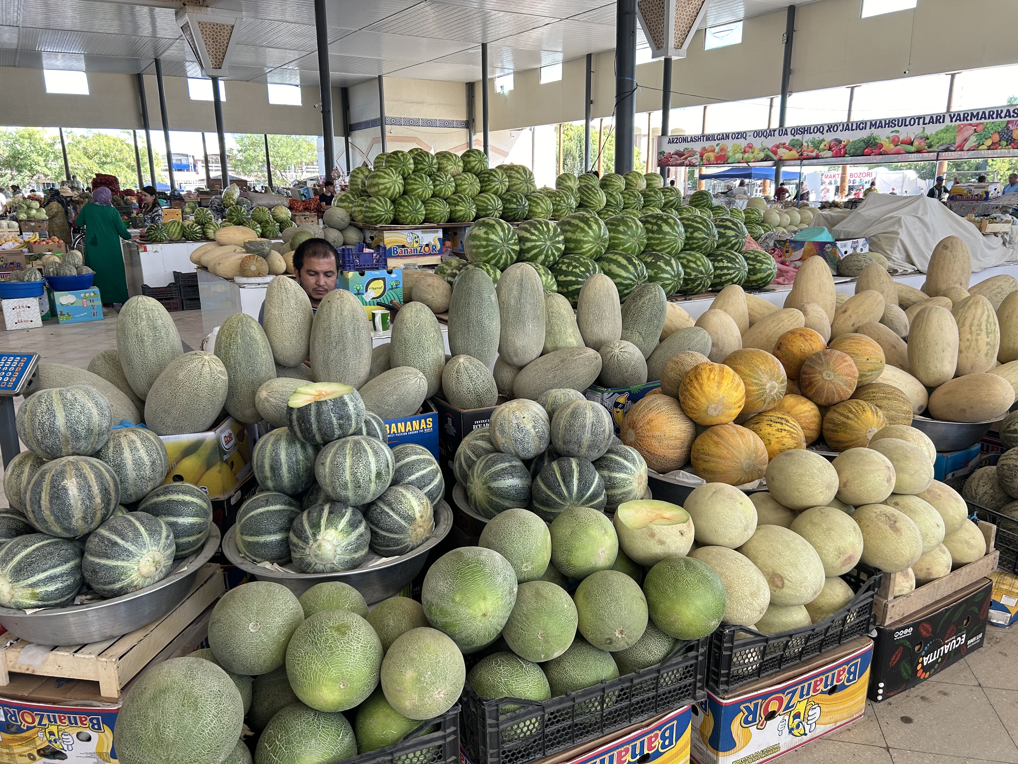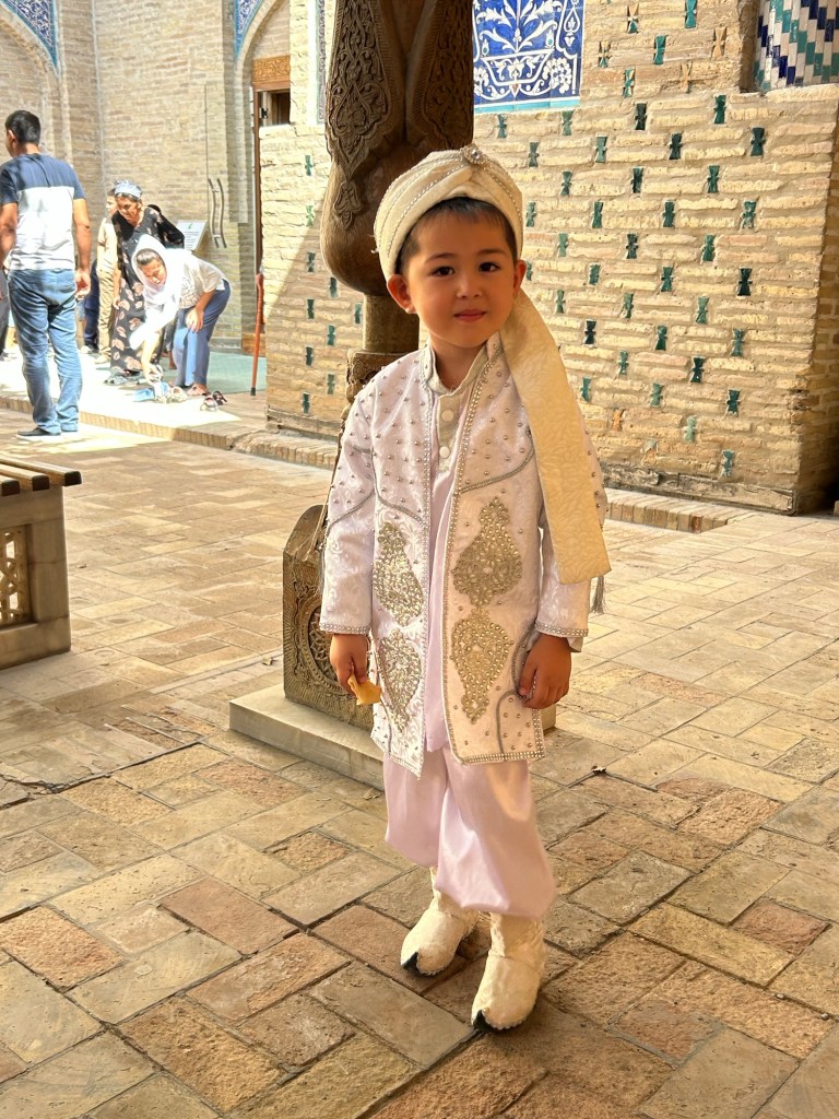 A la différence de Khiva ou Boukhara, où le visiteur peut se promener dans un périmètre central, trouver boutiques, cafés, restaurants facilement, Samarcande est une ville très étendue, répartie en quartiers qui ont chacun leurs spécificités. Inutile de chercher petites échoppes et cafés sympa autour des grands monuments comme le Reghistan : comme c’était le seul convenable à proximité à pied de notre hôtel, on a cédé deux fois aux charmes d’un tout nouvel établissement, Emirhan – réservation conseillée pour dîner en terrasse avec vue sur l’arrière du Reghistan ! Sans être exceptionnelle, une cuisine très honnête et diversifiée, service diligent et addition raisonnable.
