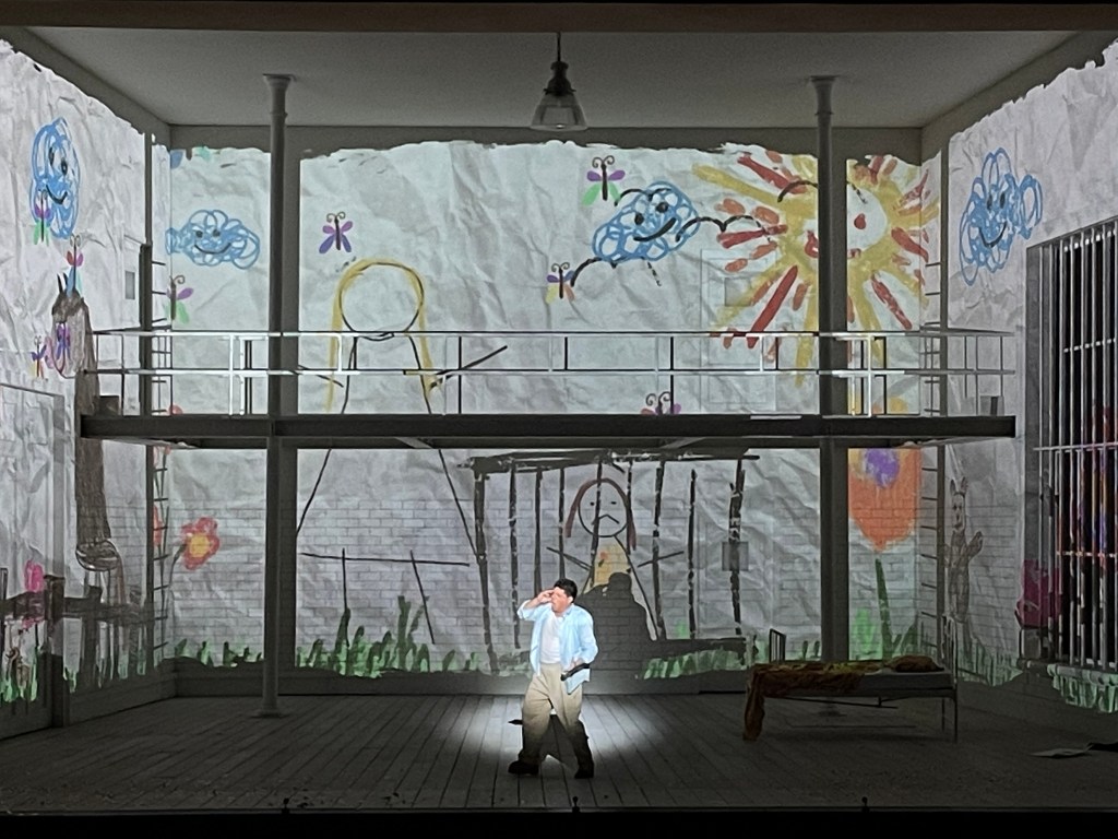 Un décor unique tout blanc, qui fait office de salle de bal, mais surtout d’asile psychiatrique où Rigoletto est interné (le rédacteur d’Ôlyrix qui a vu la représentation de vendredi soir décrit parfaitement le parti-pris de Michieletto).