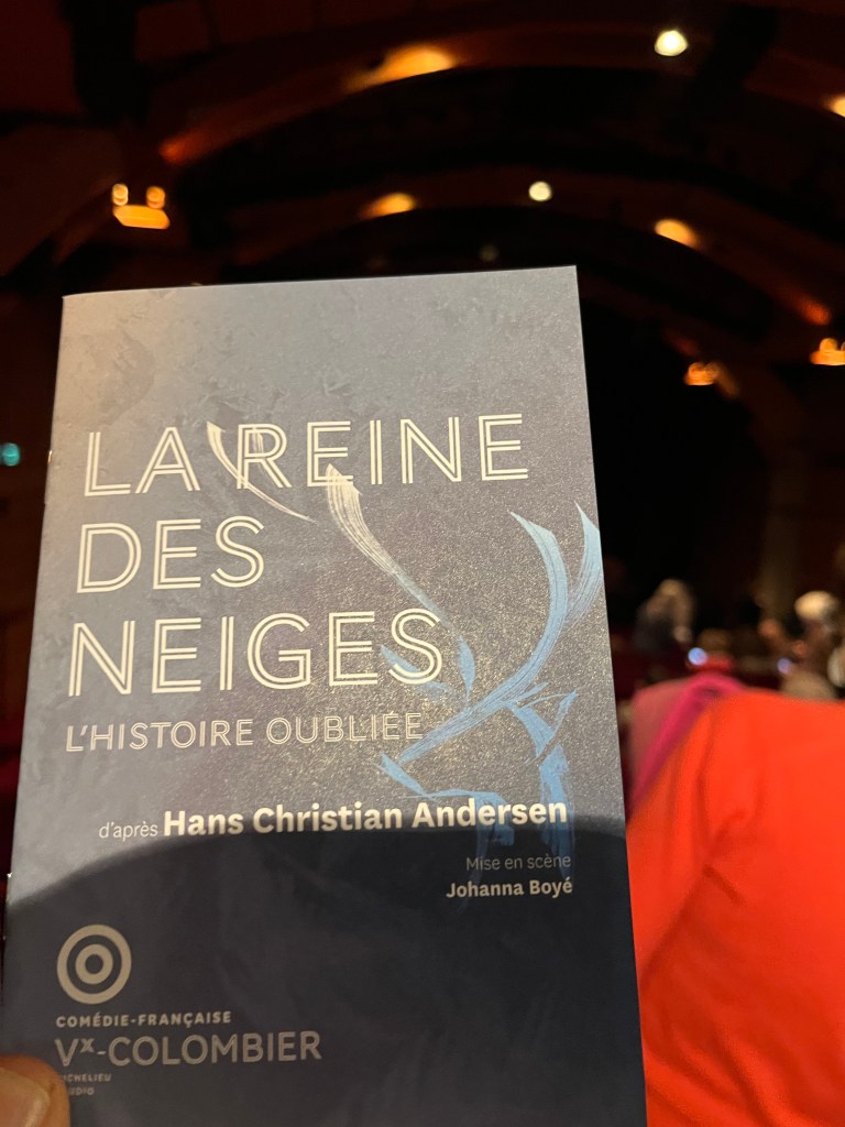 Mais trois ans après, G. et L. avouent avoir préféré le théâtre, la performance « en vrai » sur scène (le garçon fait partie d’un atelier-théâtre). Nous partageons l’avis du Monde : La Reine des neiges à la Comédie-Française délivrée de Disney : Pour leur adaptation du conte initiatique d’Andersen, Johanna Boyé et Elisabeth Ventura ont restitué toute l’ambivalence et le mystère du texte originel. Un retour aux sources très éloigné du blockbuster du studio américain.