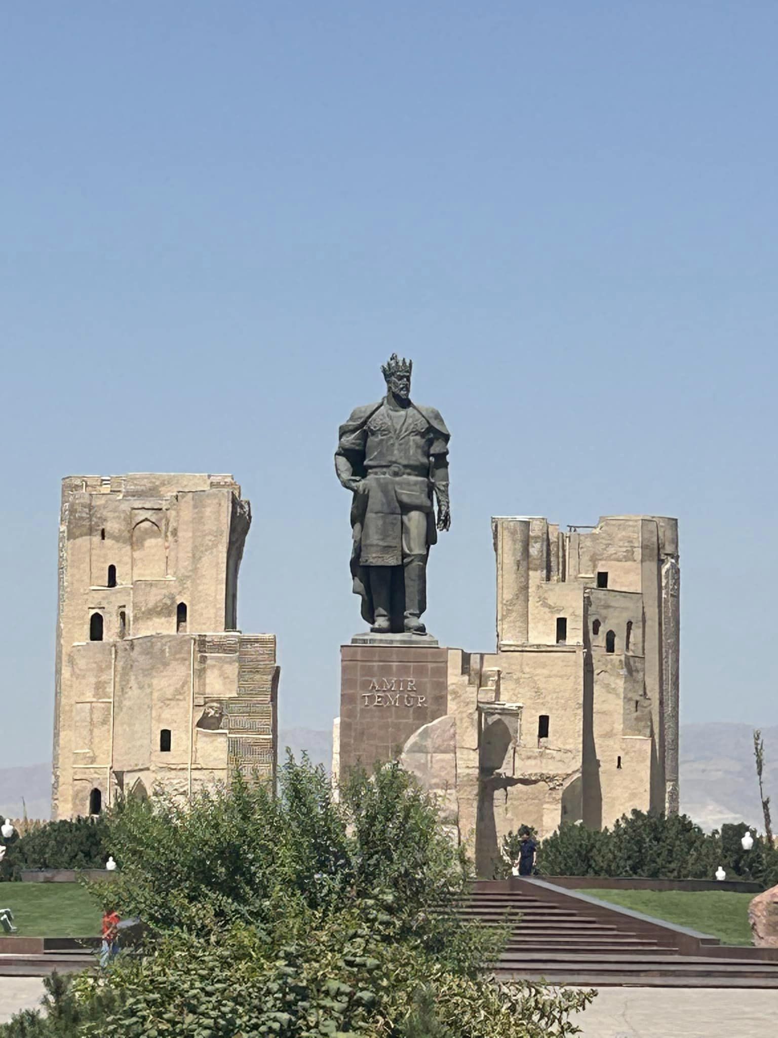 Tout ou presque à Samarcande parle de lui, Timour, plus connu sous le nom de Tamerlan (du persan تيمور لنگ, Timur(-i) Lang, qui signifie littéralement « Timour le Boiteux »); voir Samarcande la magnifique.