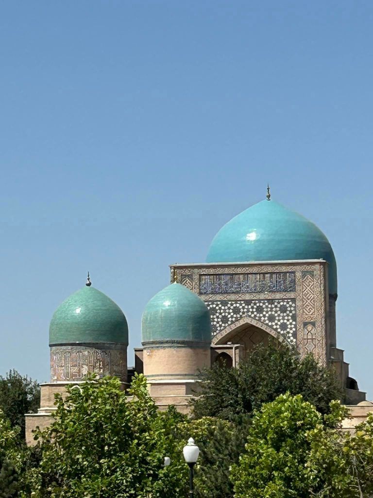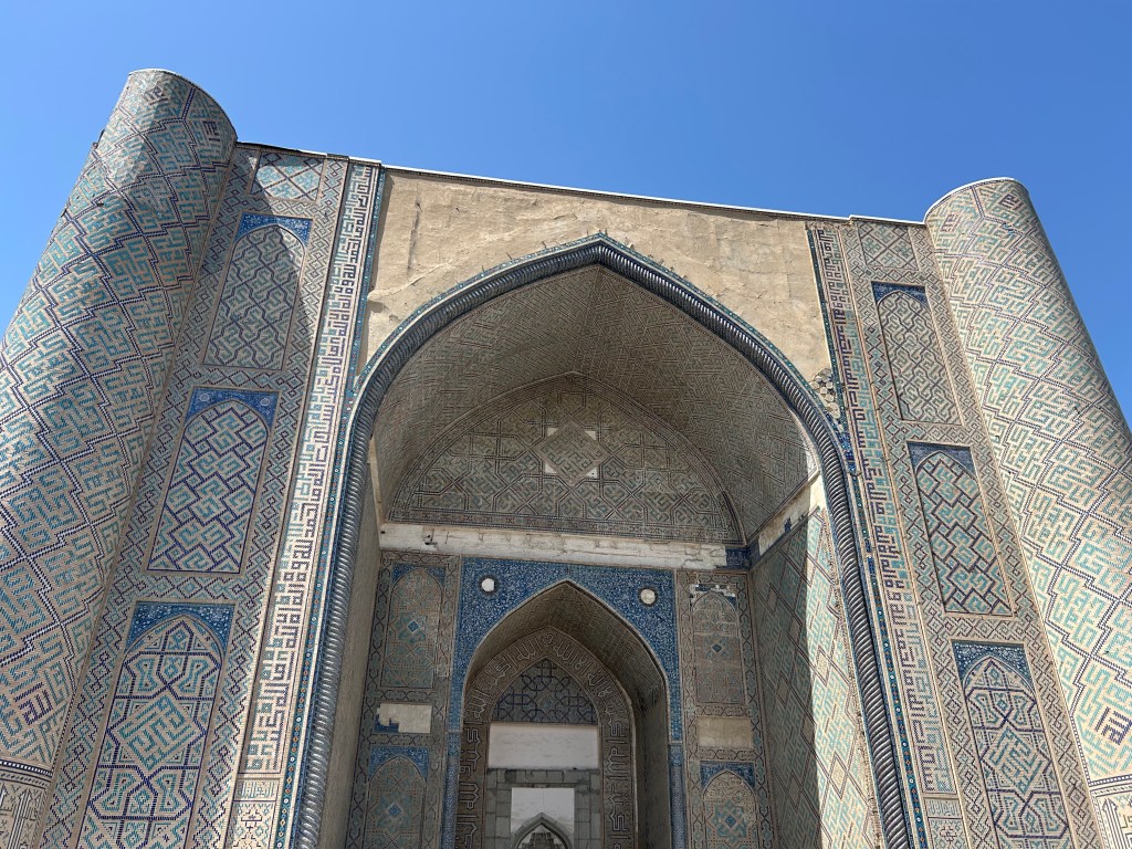 On visitait hier l’ensemble le plus monumental de Samarcande : Bibi Khanun, du nom d’une femme de Tamerlan. Les deux façades dépassent les 40 m de hauteur, la taille des mosquées est impressionnante. Mais comme beaucoup d’édifices de la période timouride, ils ont failli disparaître, en particulier pendant la période soviétique.
