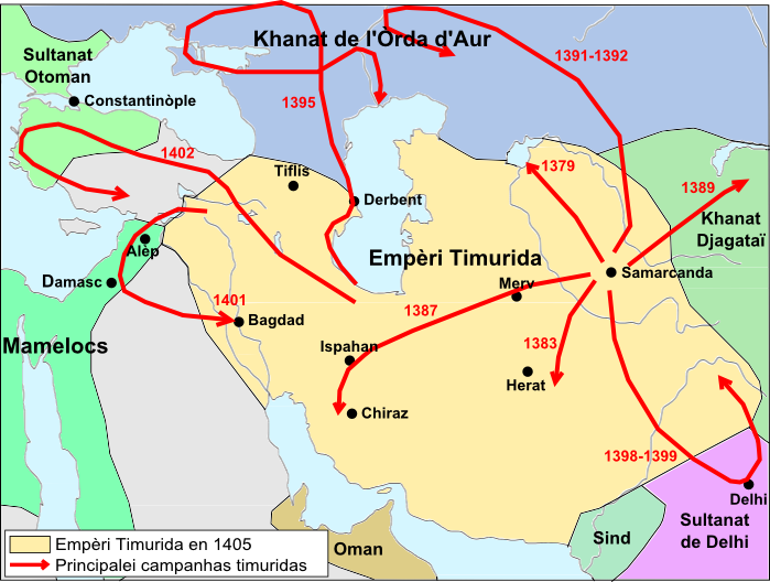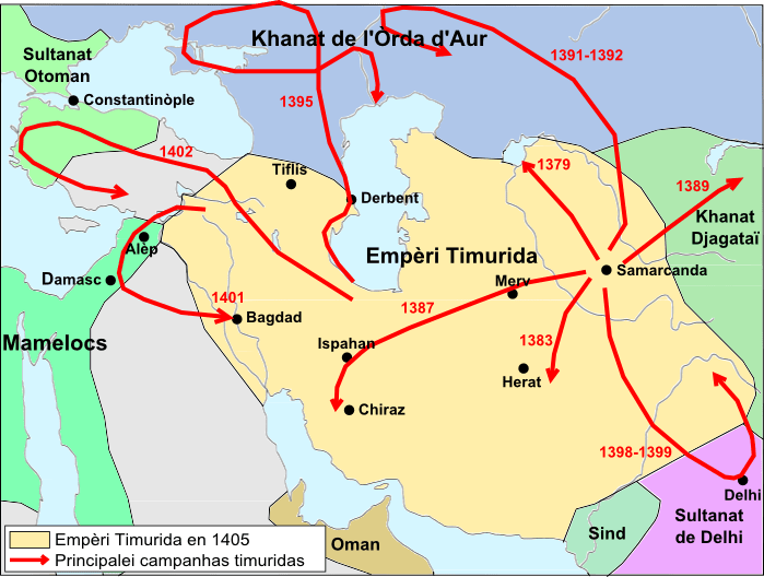 « Tamerlan a laissé dans l’histoire un souvenir qui rivalise presque avec celui de Gengis Khan et qui est plus précis parce que moins lointain. Ce Mongol turquisé régna trente-cinq ans, de 1370 à 1404, à Samarkand, et mena inlassablement des campagnes militaires, toutes victorieuses, qui le conduisent de Delhi à la mer Egée, de Damas au Turkestan chinois. Entreprises au nom de la guerre sainte musulmane, par un étrange paradoxe, elles eurent pour résultat essentiel la ruine ou l’affaiblissement des plus grandes puissances de l’Islam.