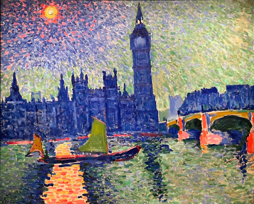 Ci-dessous, à gauche André Derain (1880-1954) Big Ben, Londres, à droite Paul Signac (1865-1956) Le port au soleil couchant (Saint-Tropez)