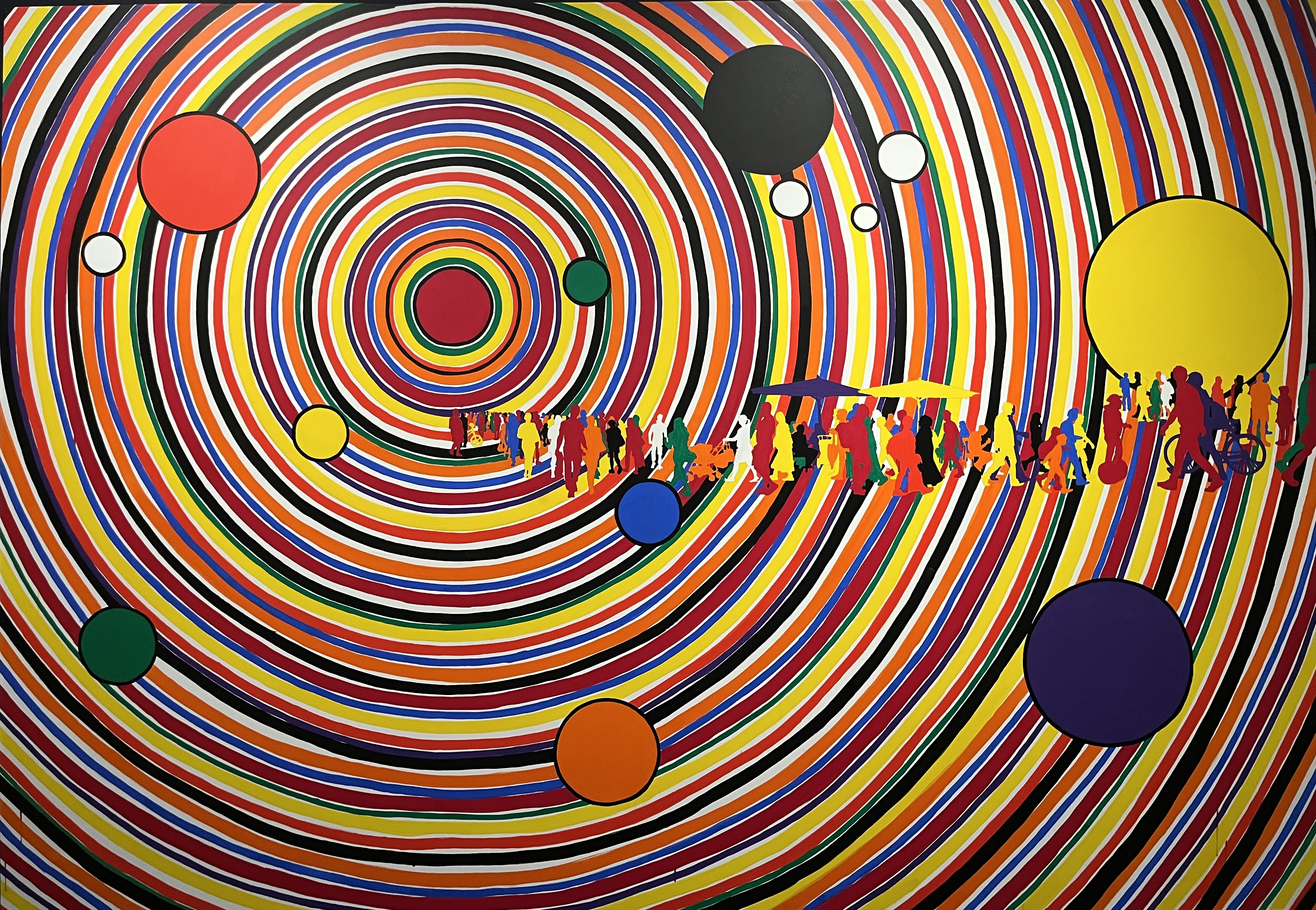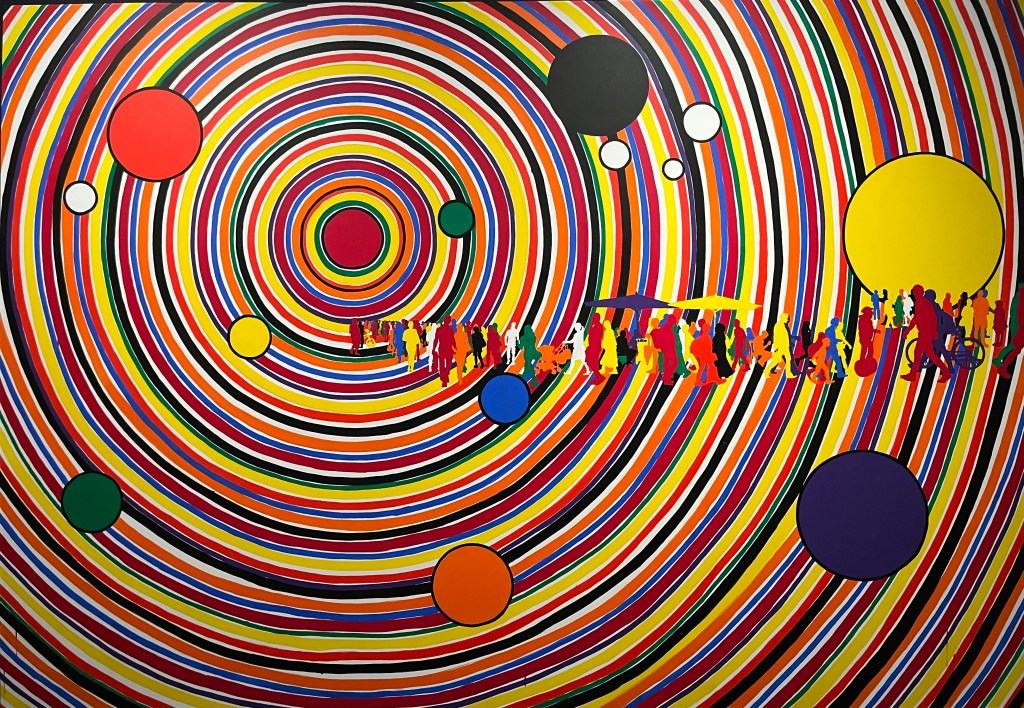 On est accueilli, cueilli devrais-je dire, par cet éblouissant Le soleil inonde ma toile (1966) de Gérard Fromanger (1939-2021)