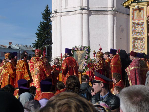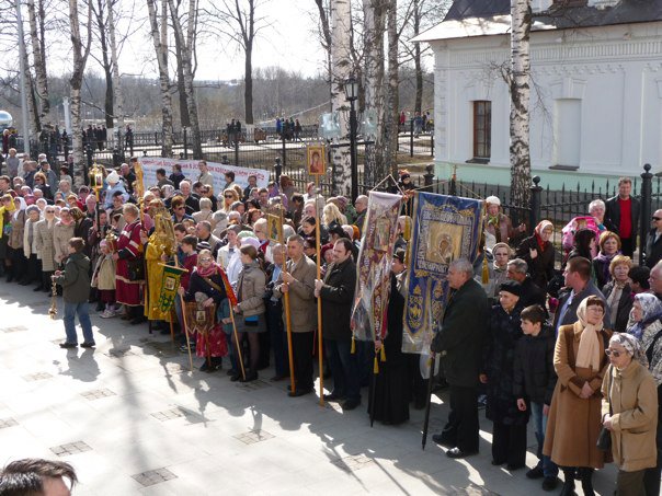 Et, ce 24 avril 2011, de tomber à Iaroslavl sur les célébrations de la Pâque russe, en présence de l’archimétropolite de Vladimir. Célébrations festives, ferveur populaire, dans un joyeux désordre, d’où tout protocole semblait absent.